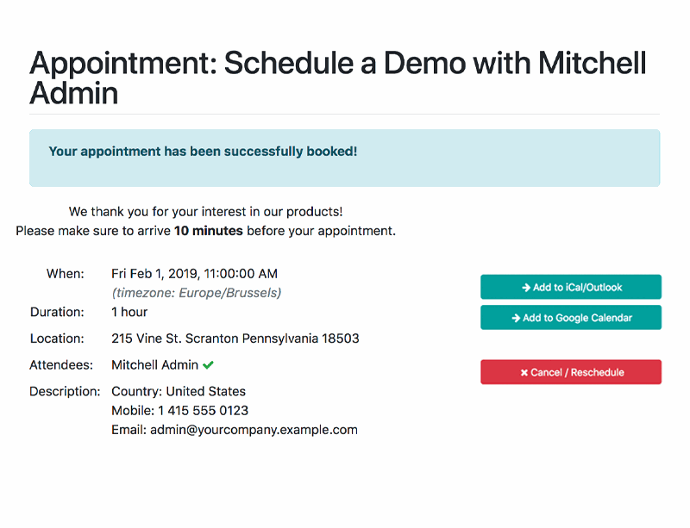 Після запланованої події вона автоматично додається до вашого календаря, а обидві сторони отримують підтвердження на електронну пошту.