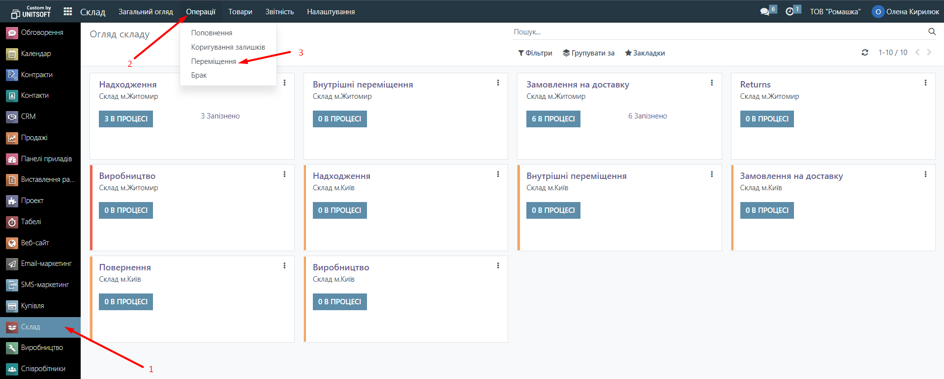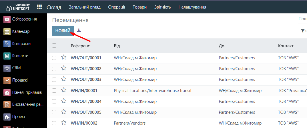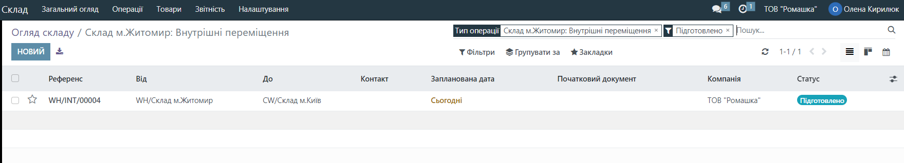 We indicate the Type of operation - this is the warehouse from which we will move the goods, Destination location - this is the warehouse to which we will move the goods. (For example, from the Zhytomyr warehouse, the goods will be moved to the Kyiv warehouse).