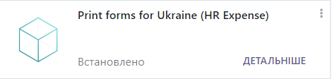 To add printed forms, you need to go to Applications and install the Print forms for Ukraine (base) module, as well as the Print forms for Ukraine (HR Expense) module.