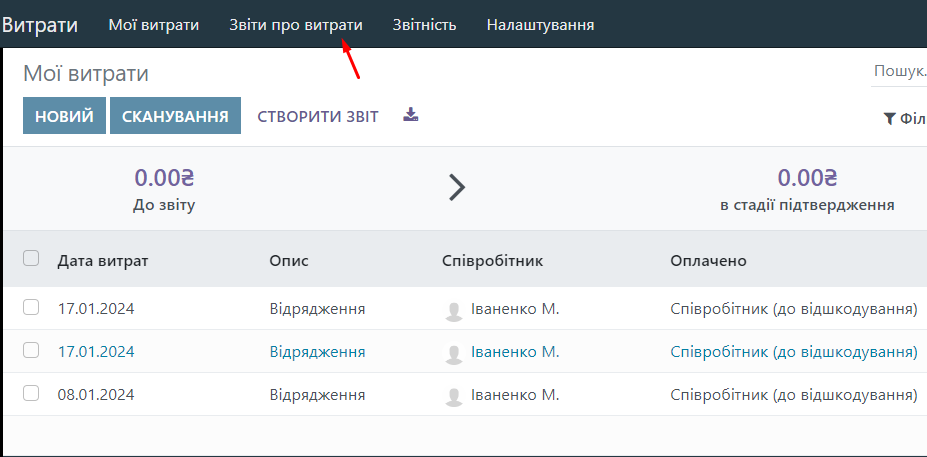 Go to the Expenses module
