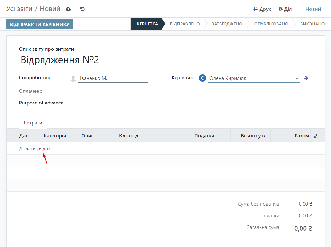 We enter the data into the report and click the "Add Row" button.