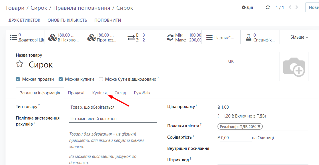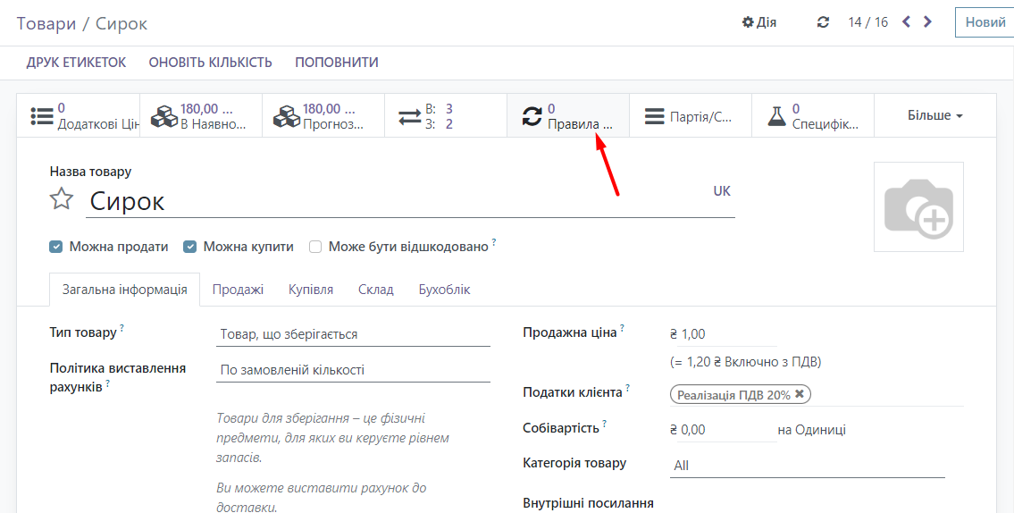 After that, a line of the replenishment rule will appear, let's analyze it.