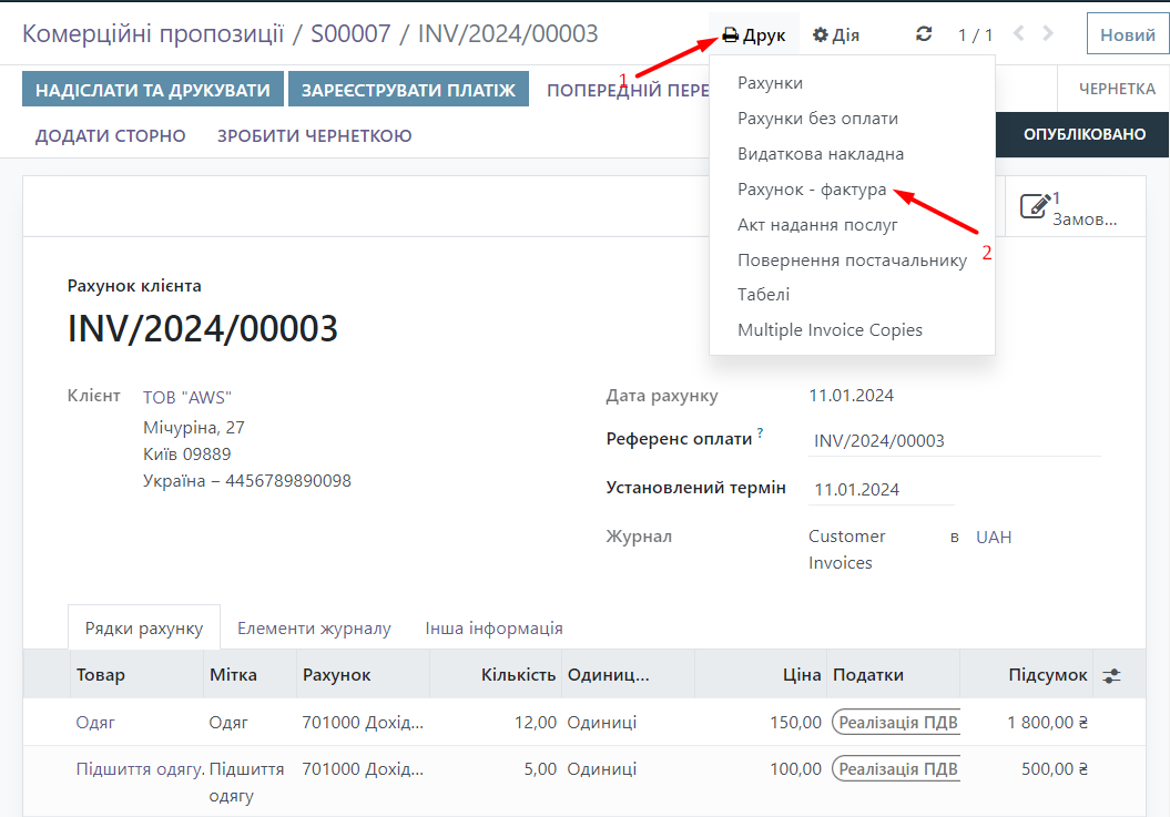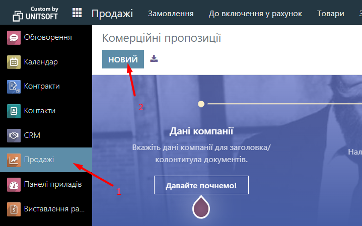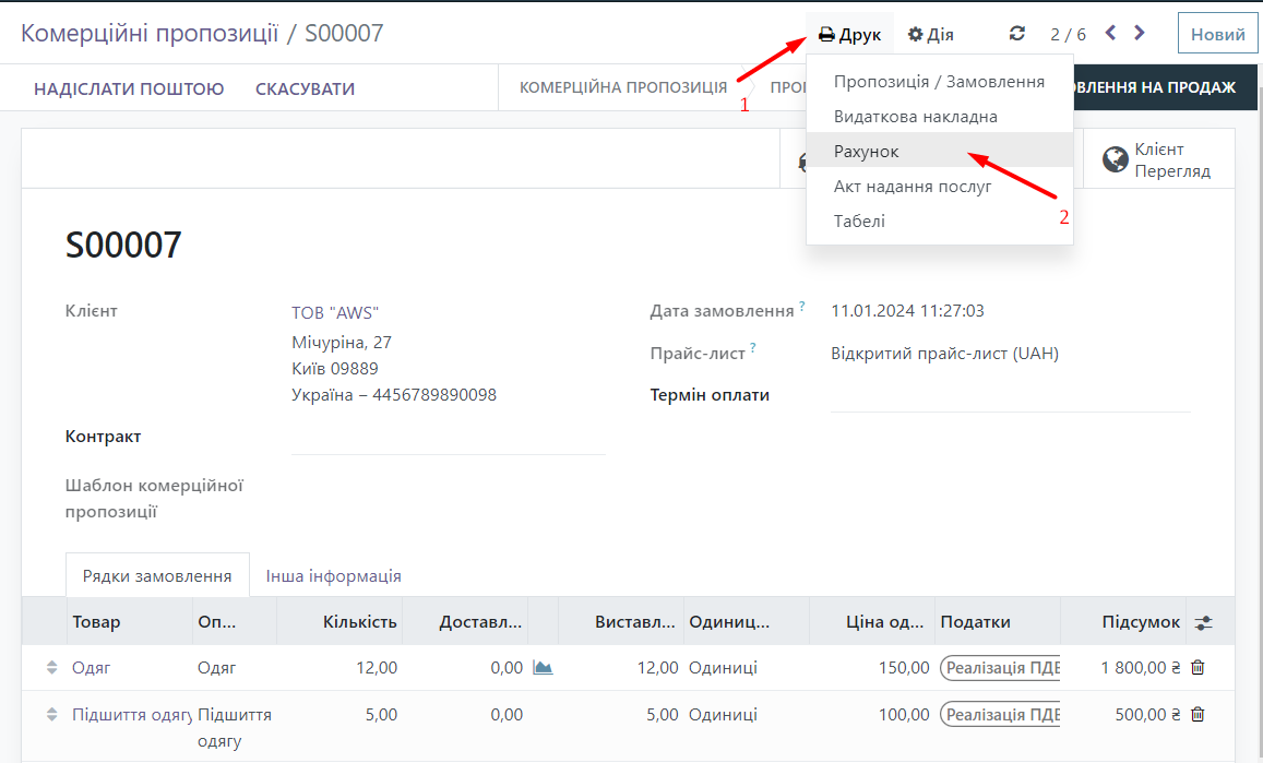 Now we can find the printed form of the Invoice. We go to the "Sales" module and select the Commercial Offer.