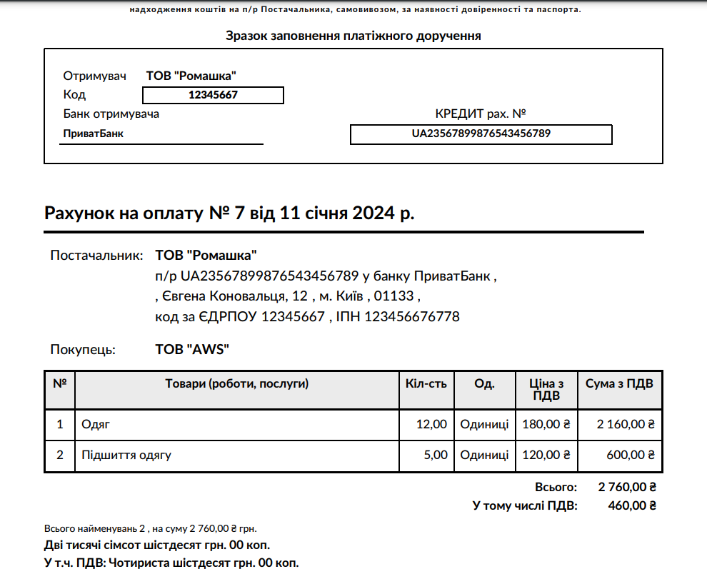 We enter all data, goods, and services, and then click the "Confirm" button.