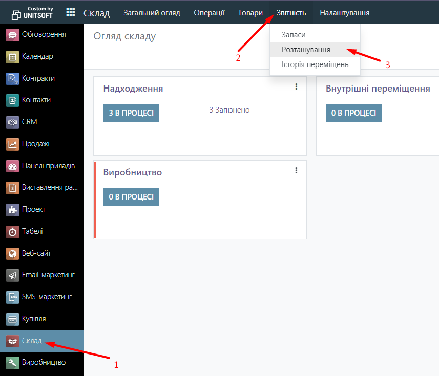 Now go to the Warehouse module, click on Reports in the menu, and select Location.