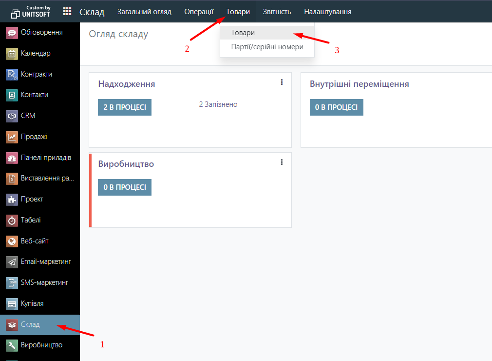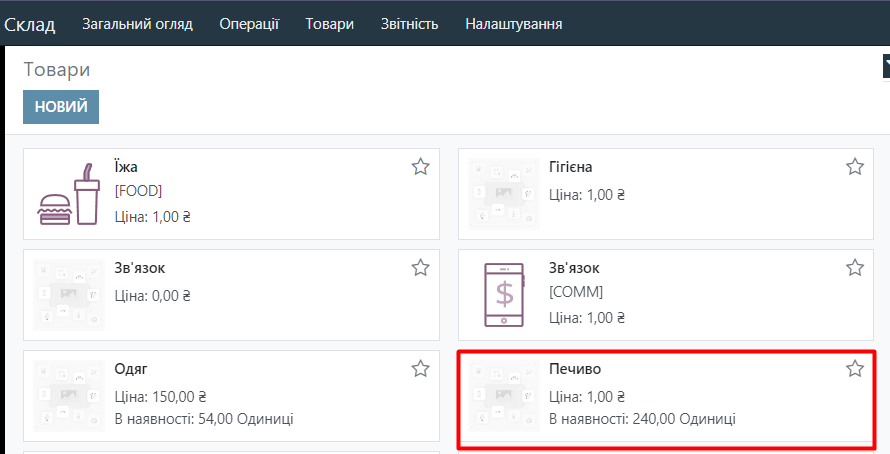 You can also view the quantity of goods in stock in the Products tab itself. To do this, go to the Warehouse module, click on Products in the menu, and select Products. Choose the desired product. And click the In Stock button.