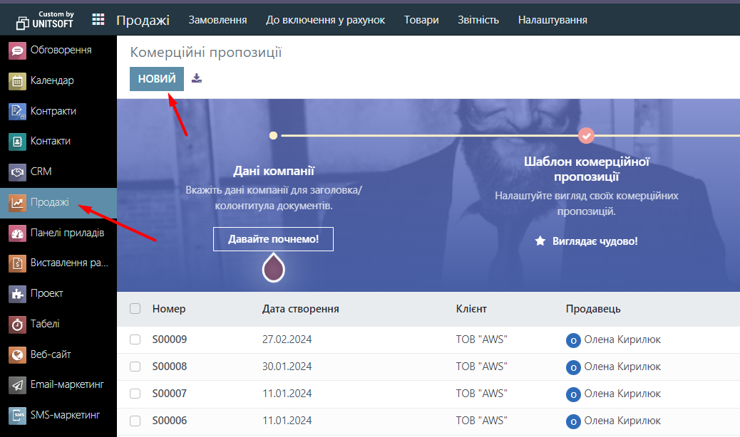 We go to the Sales module and click the New button.