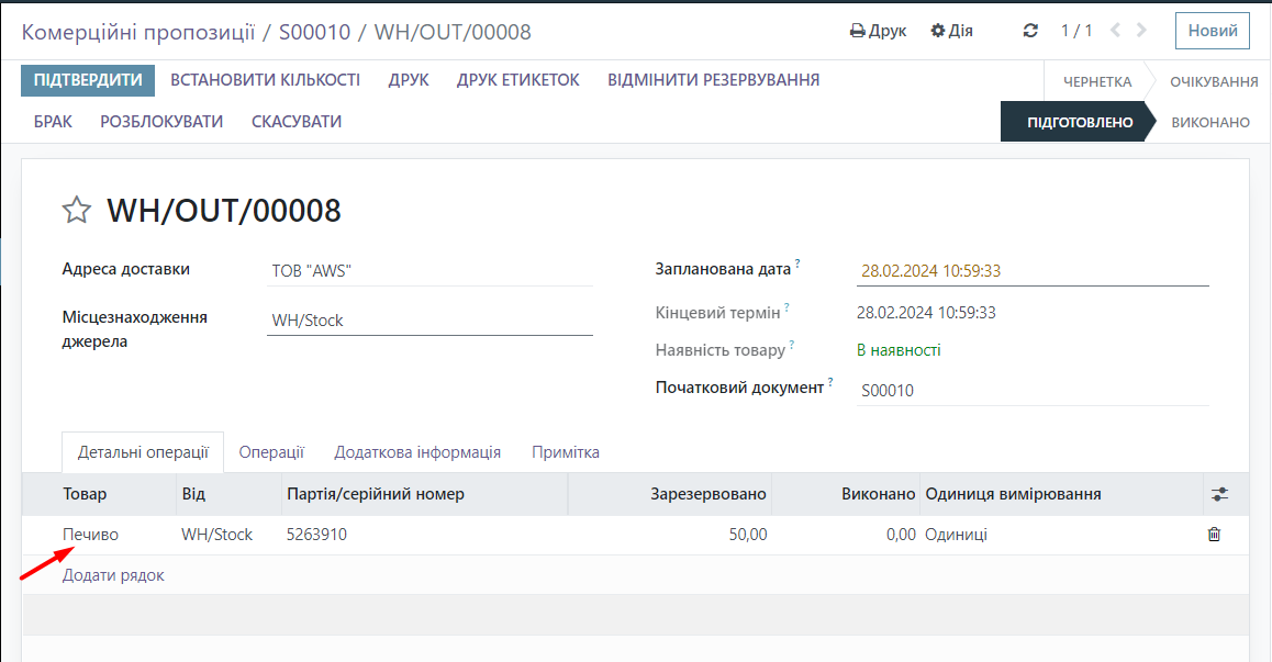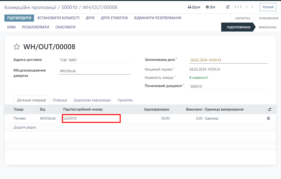 When warehouse transfers or product sales are conducted, it is necessary to specify the batch number in the relevant documents. Let's consider an example of a sale.