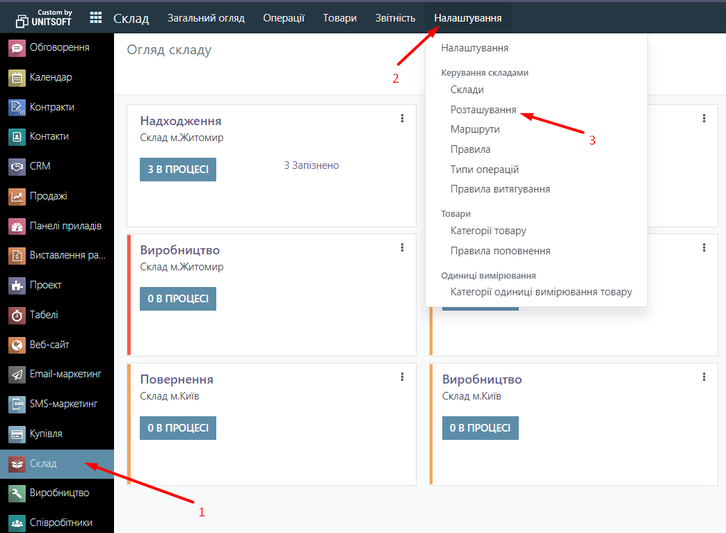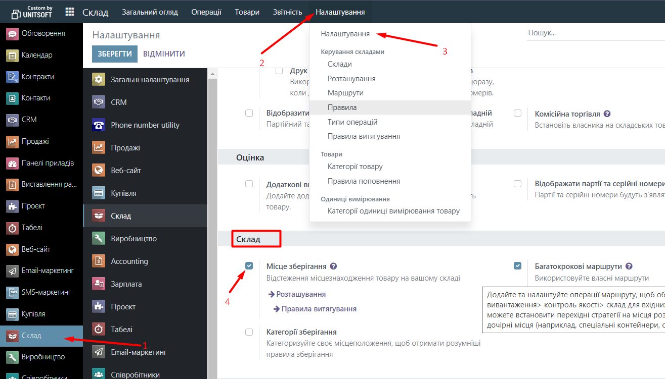 Warehouse accounting in the Odoo system is cell-based. Therefore, there is a setting that will show the location of the product in your warehouse (shelf, department, container). That is, within the warehouse, you can create separate product locations.