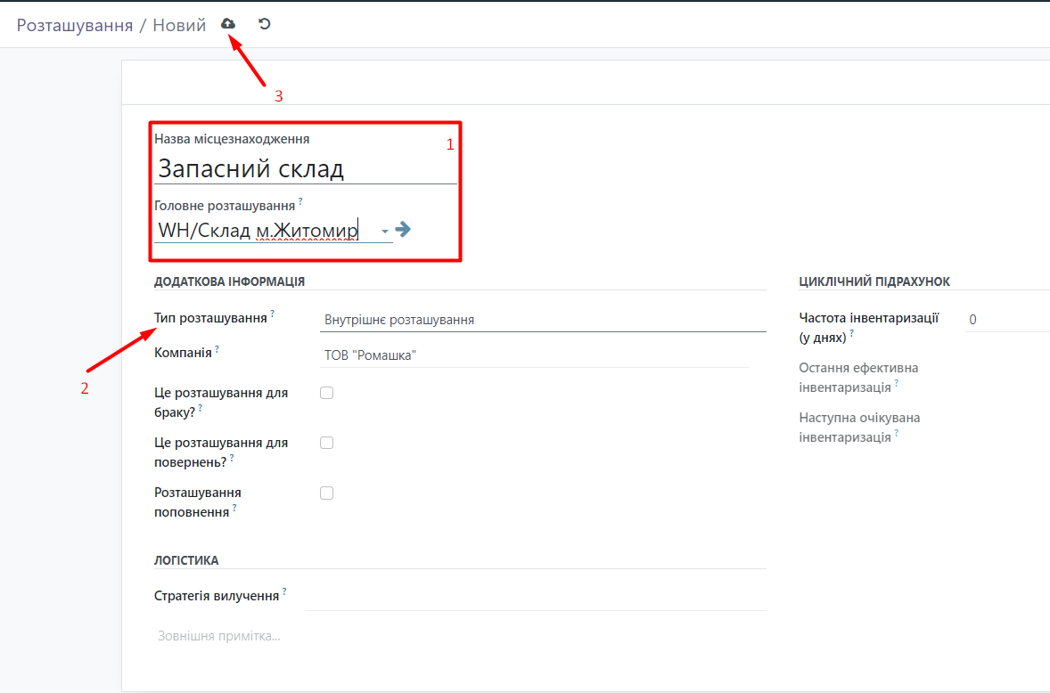 We go to the appropriate location of your Warehouse and in the Location Name, we enter, for example, the name of your Warehouse to which this Location belongs. After that, we click the Save button.