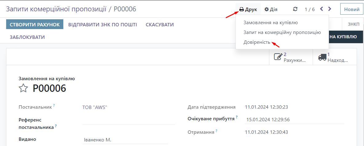 Now we can find the printed form of the Power of Attorney. We go to the Purchase module.