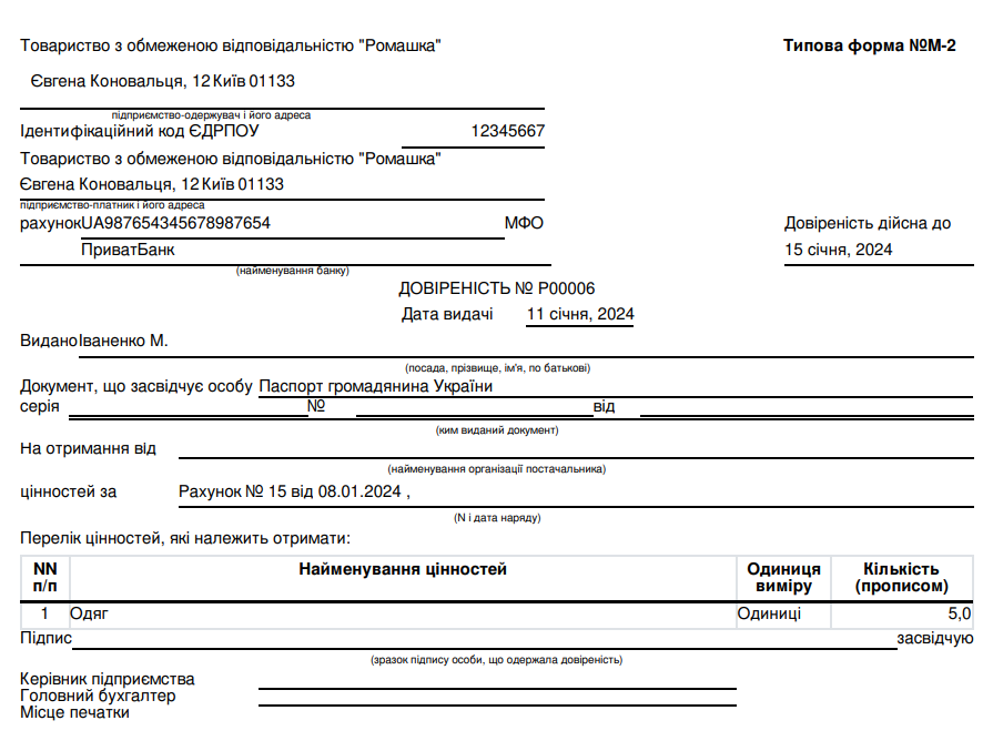Next, click on the Legal Information of Ukraine tab and enter the data. Then they will be indicated in printed form.