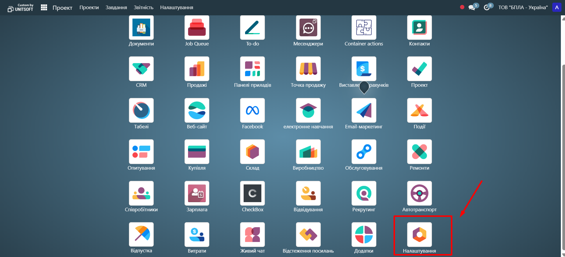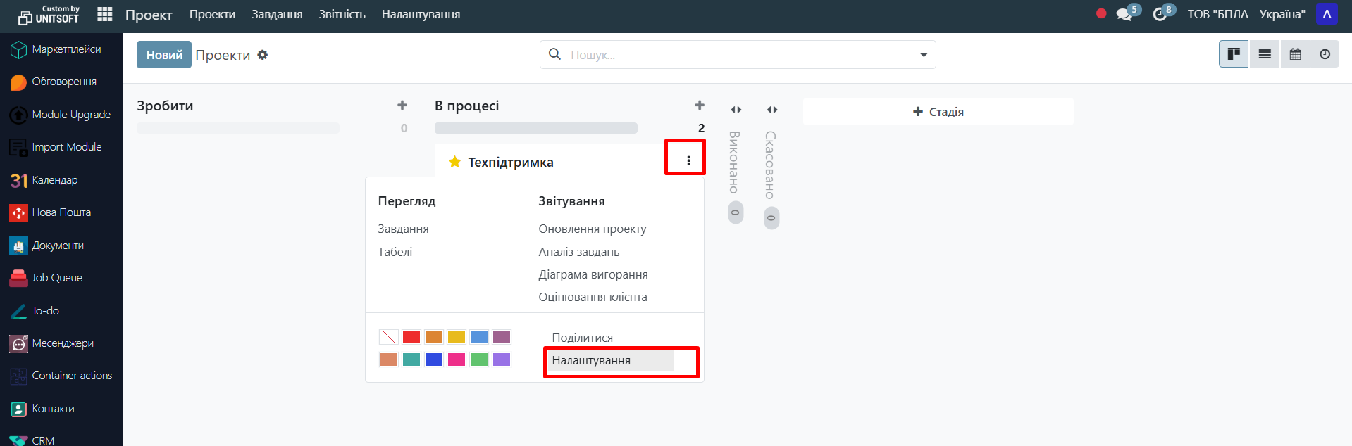 1. Go to  module "Settings", section "Projects":