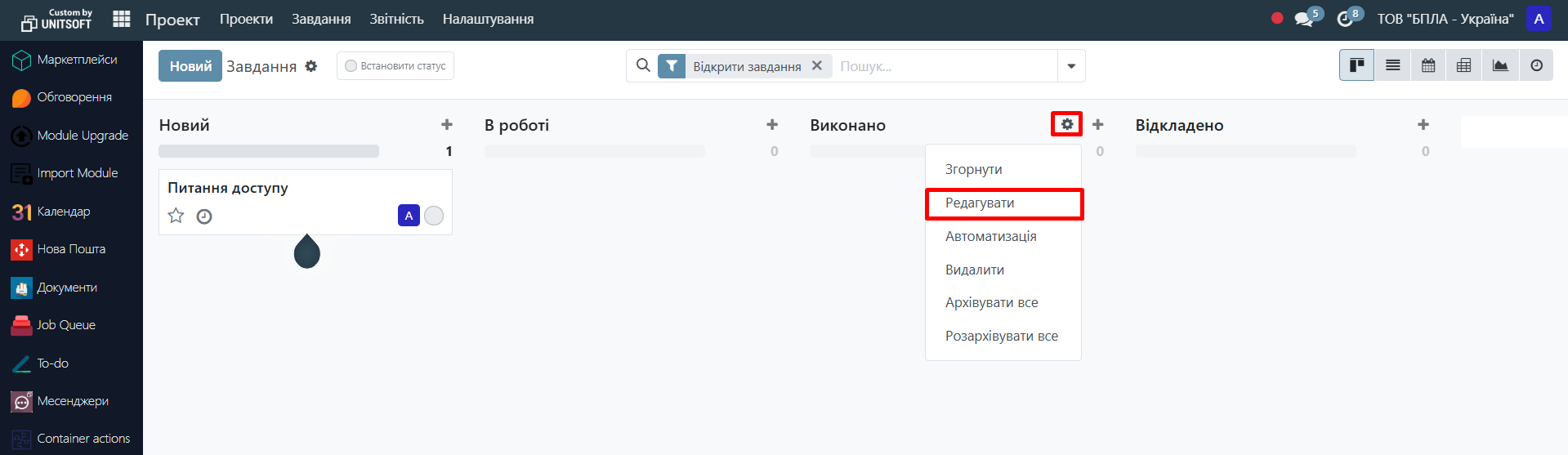 1. Open the project. For the required stage, click on the gear icon - "Edit":