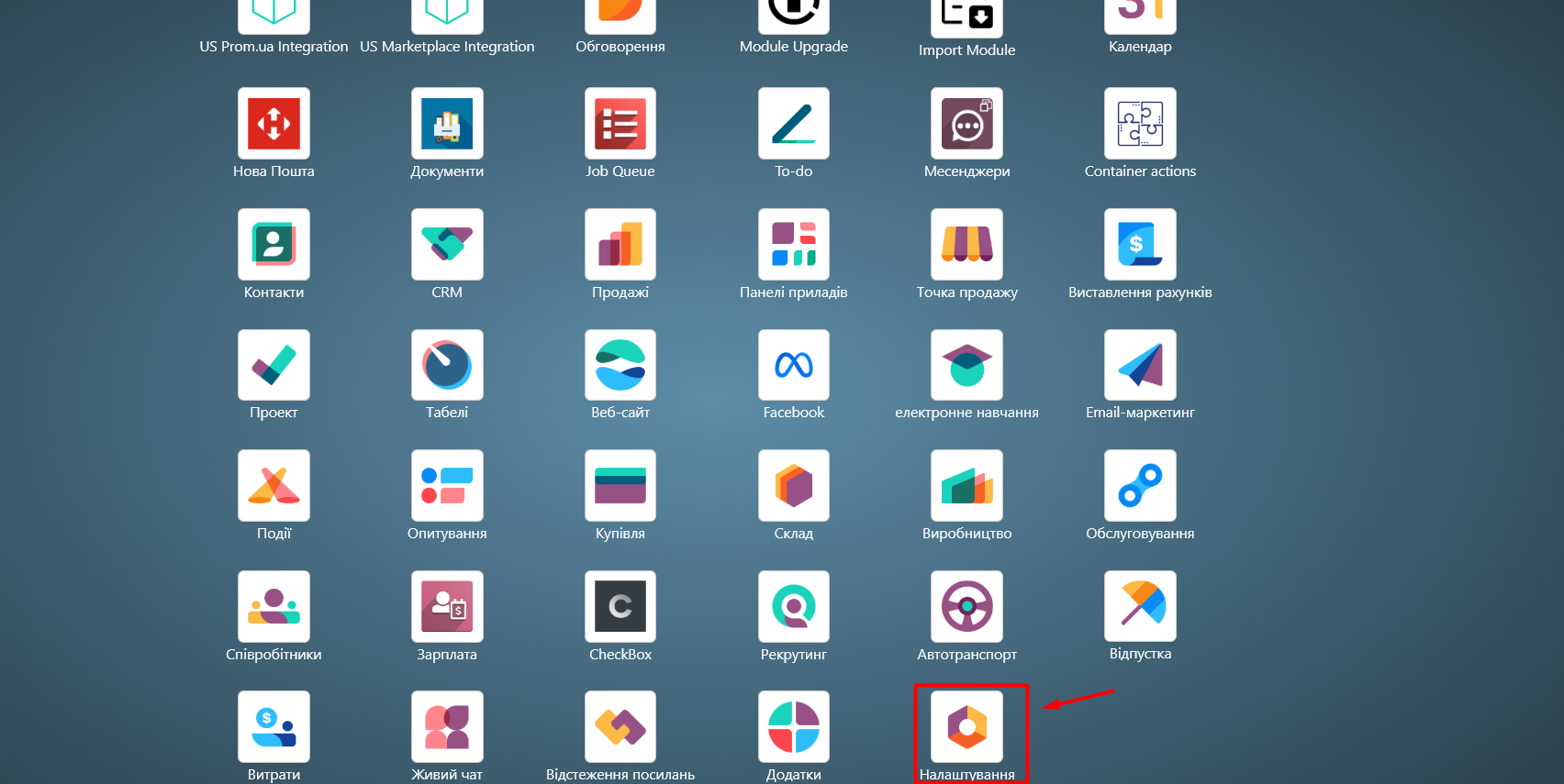 Go to the 'Settings' module