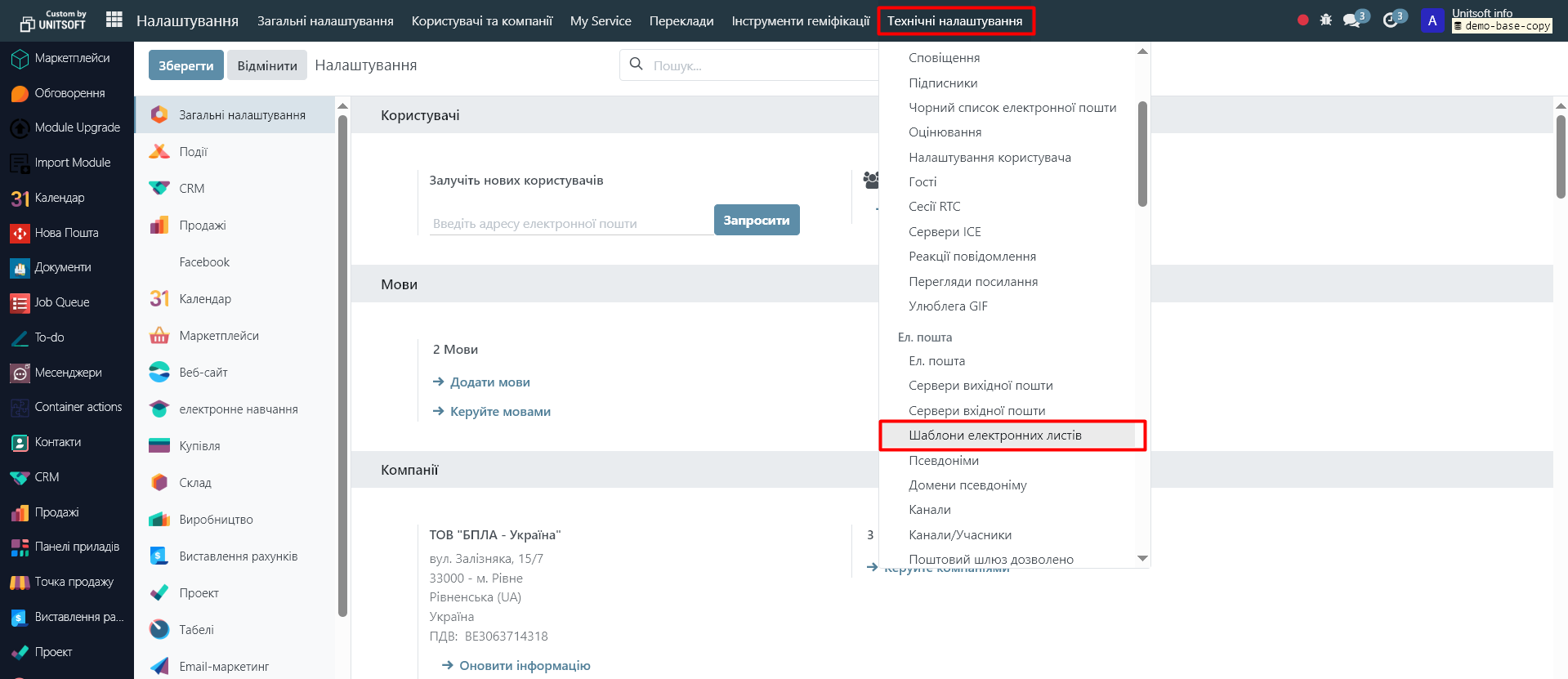 2.1 Go to the 'Settings' module - 'Technical Settings' - 'Email Templates':
