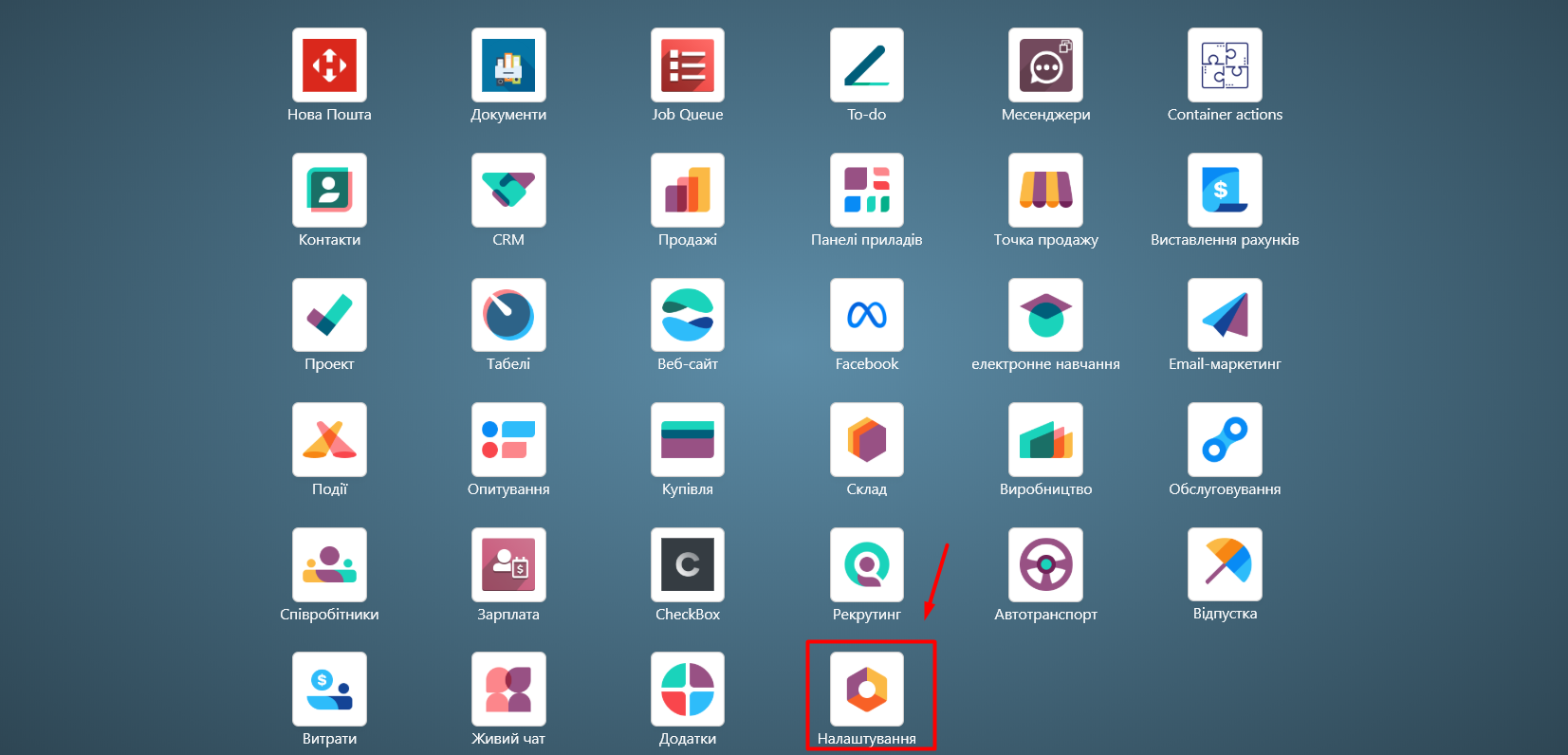 Go to the 'Settings' module: