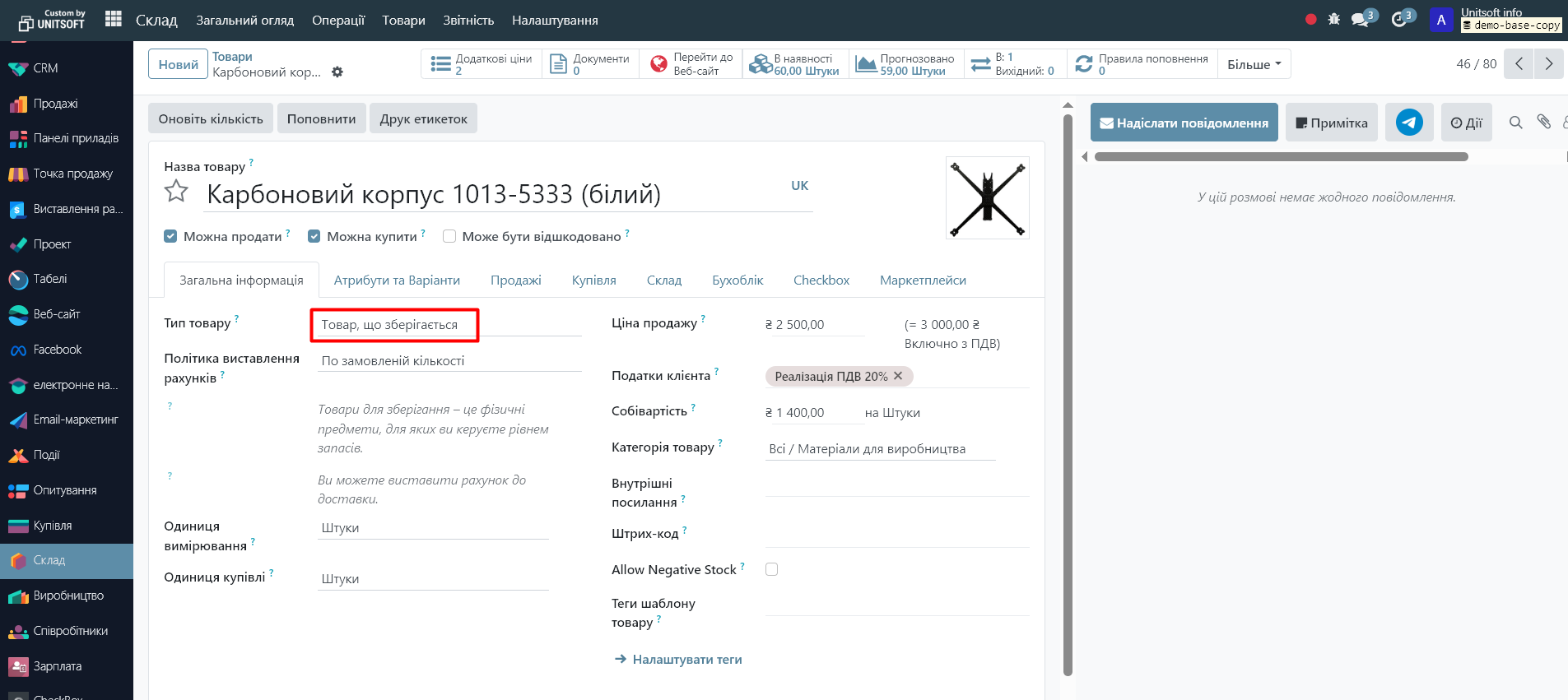 Note, if you specify 'Purchase', you must specify the main supplier of the product. To do this, indicate such a supplier in the 'Purchase' tab of the product card.