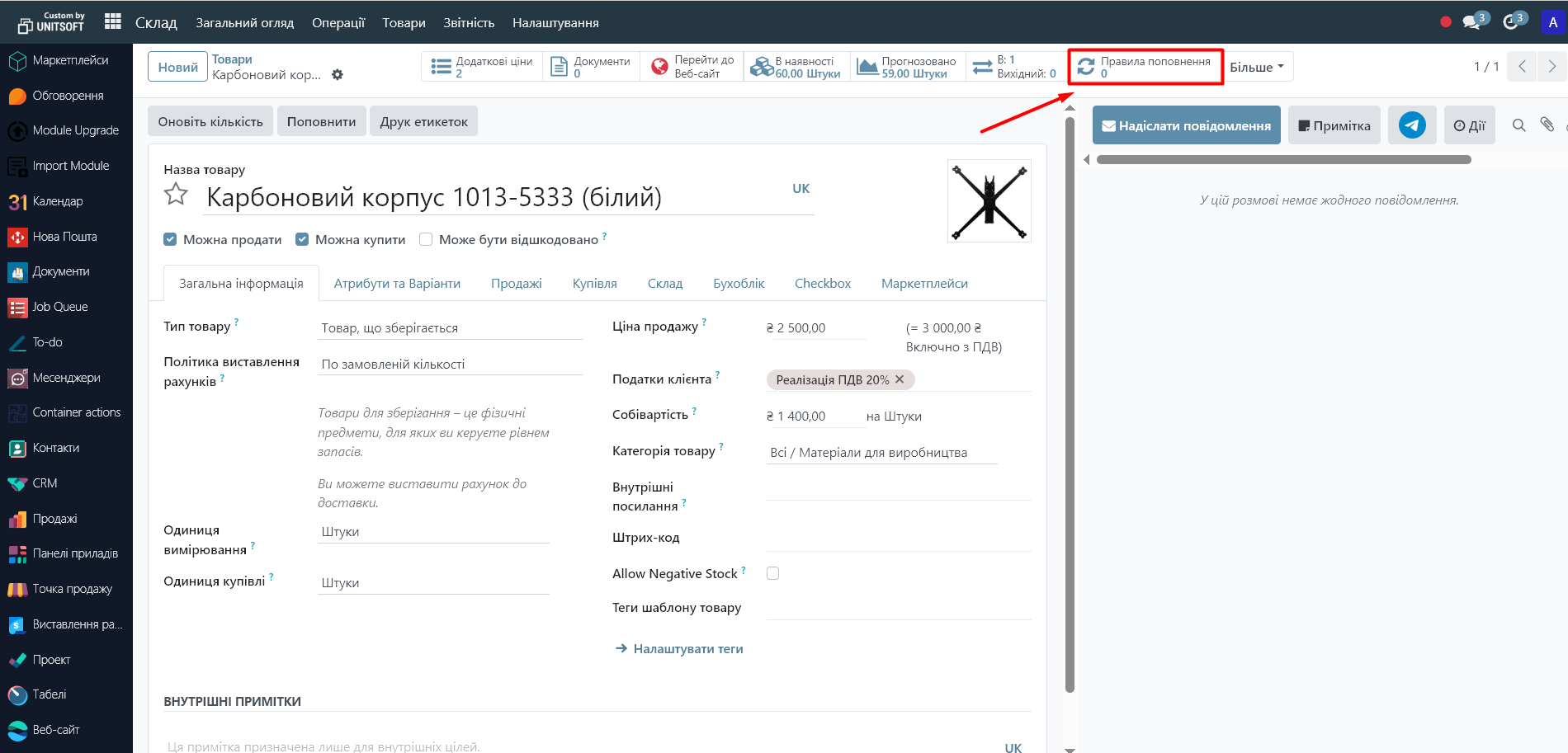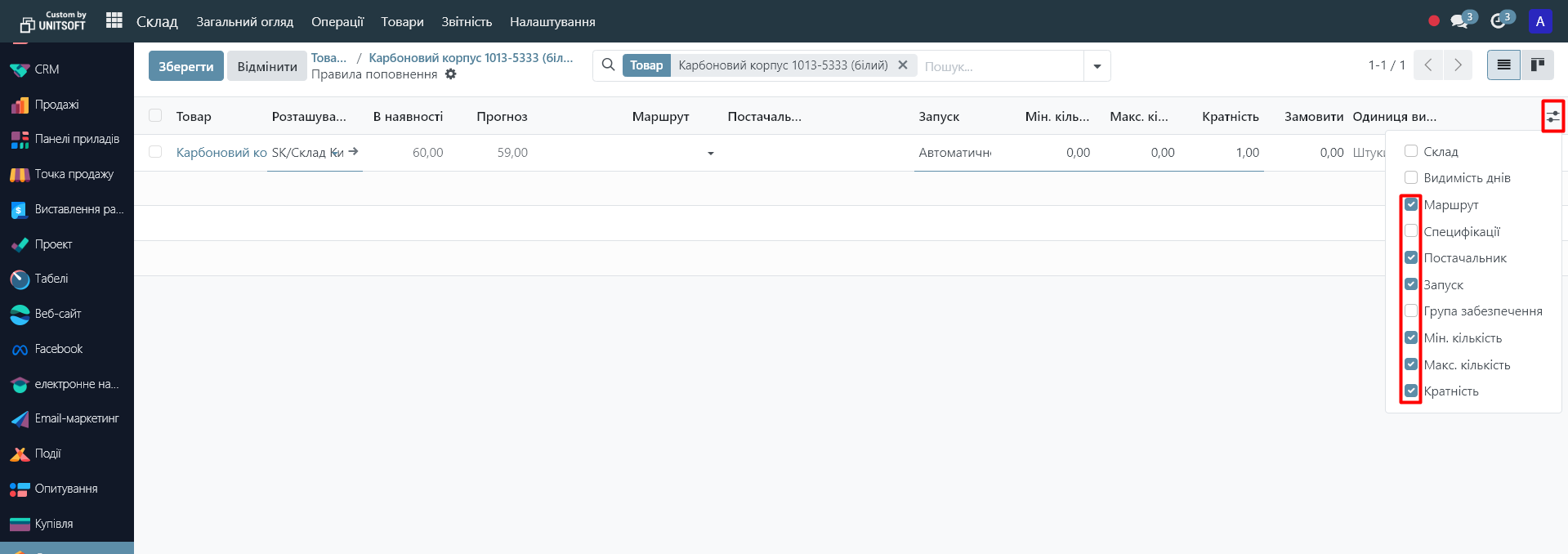 - Min Quantity - the lower stock threshold. When the quantity of the product falls below this value, the system initiates replenishment.