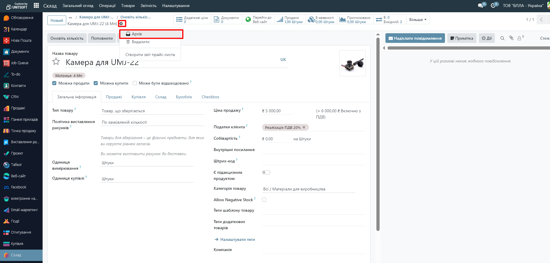 В Odoo архівування використовується замість видалення, щоб приховати записи зі списків, не втрачаючи історію. Це зручно, коли довідник більше не використовується, але повністю видаляти його небажано.