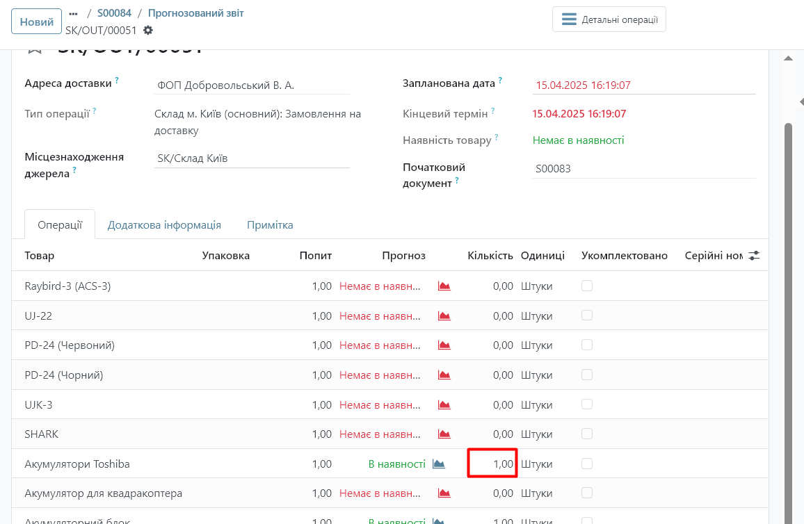2. Натисніть на піктограму (іконку) біля кількості товару – «Переглянути прогноз»:
