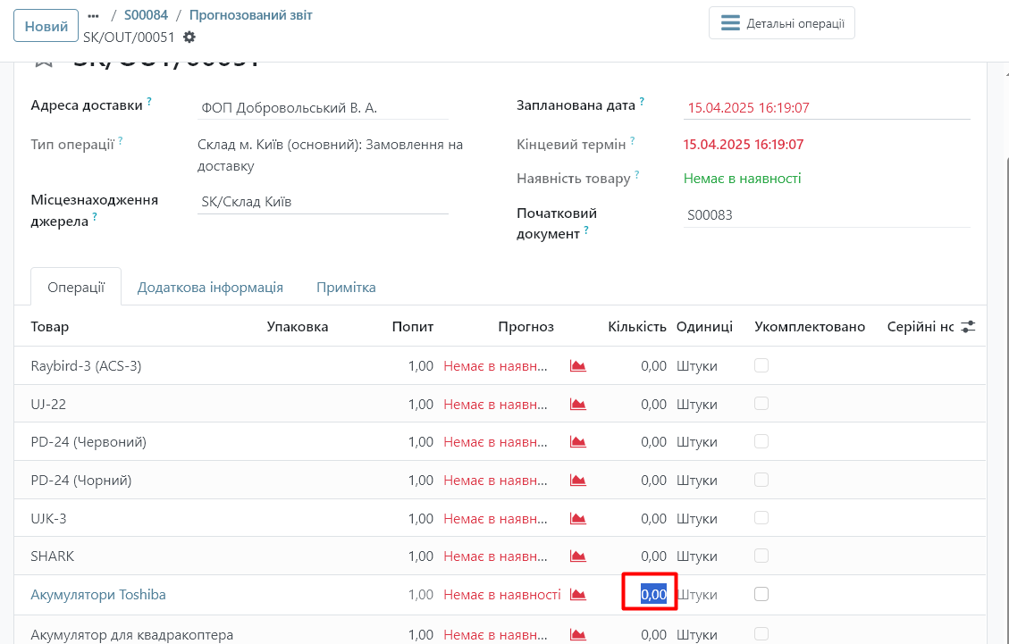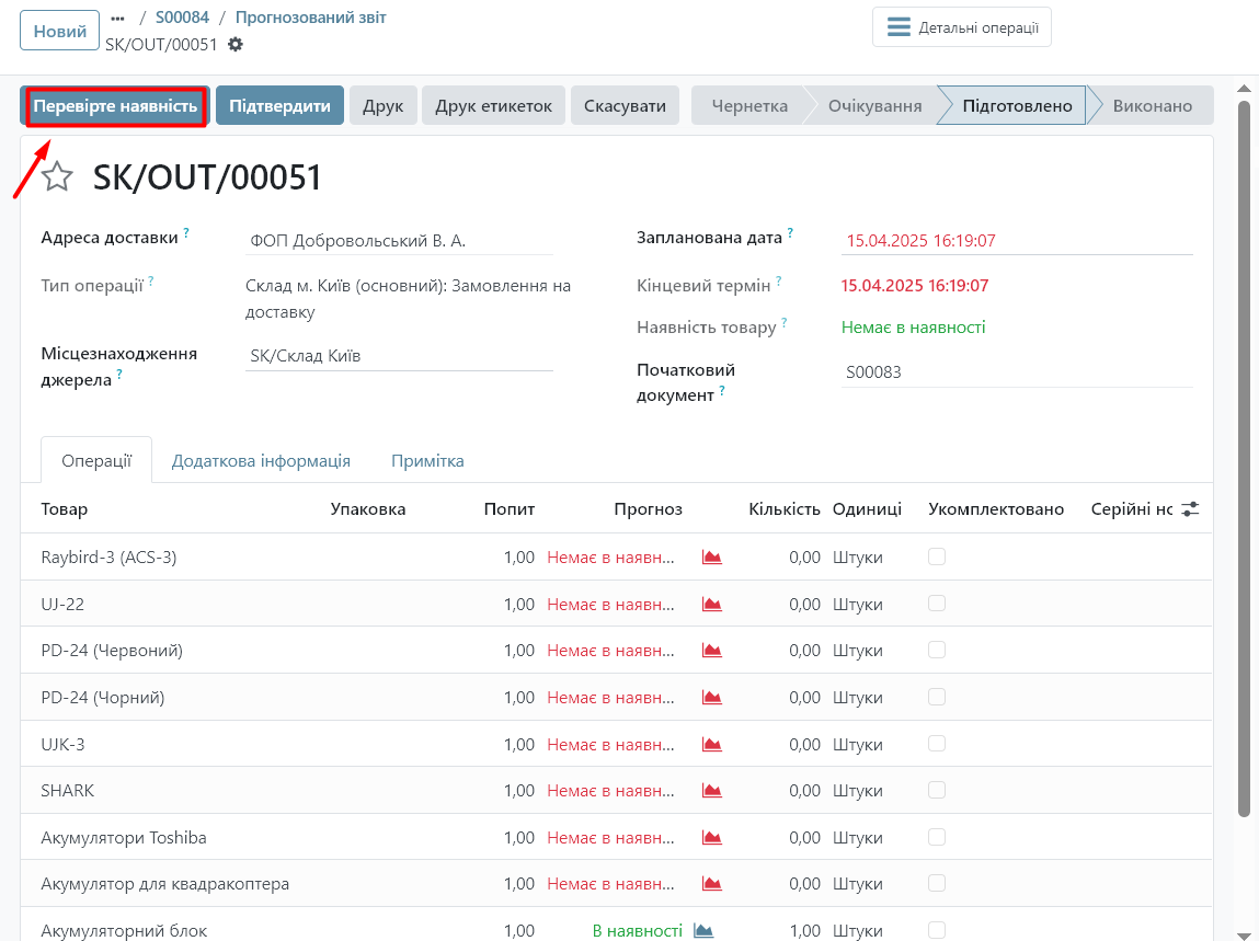 1. Перейдіть у документ, де відображається проблема з доступністю товару.