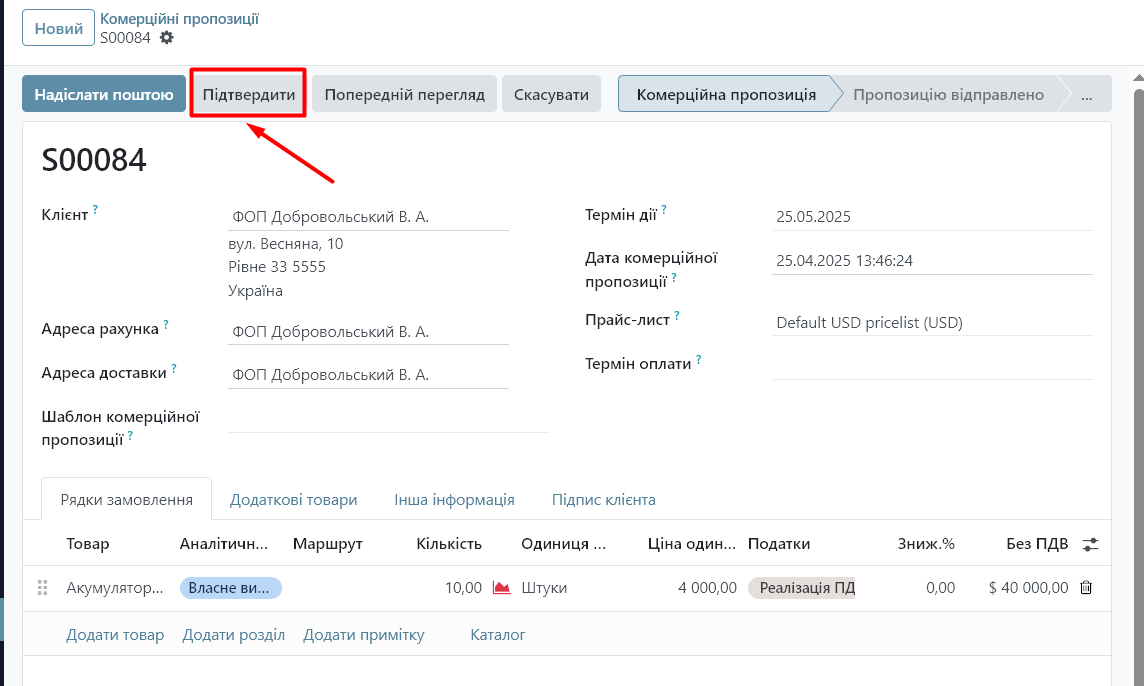 • замовлення клієнта,