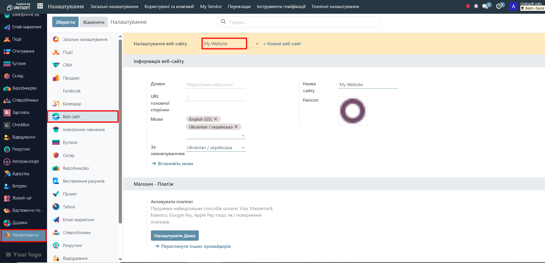 Для цього перейдіть в модуль «Налаштування» та оберіть потрібний сайт: