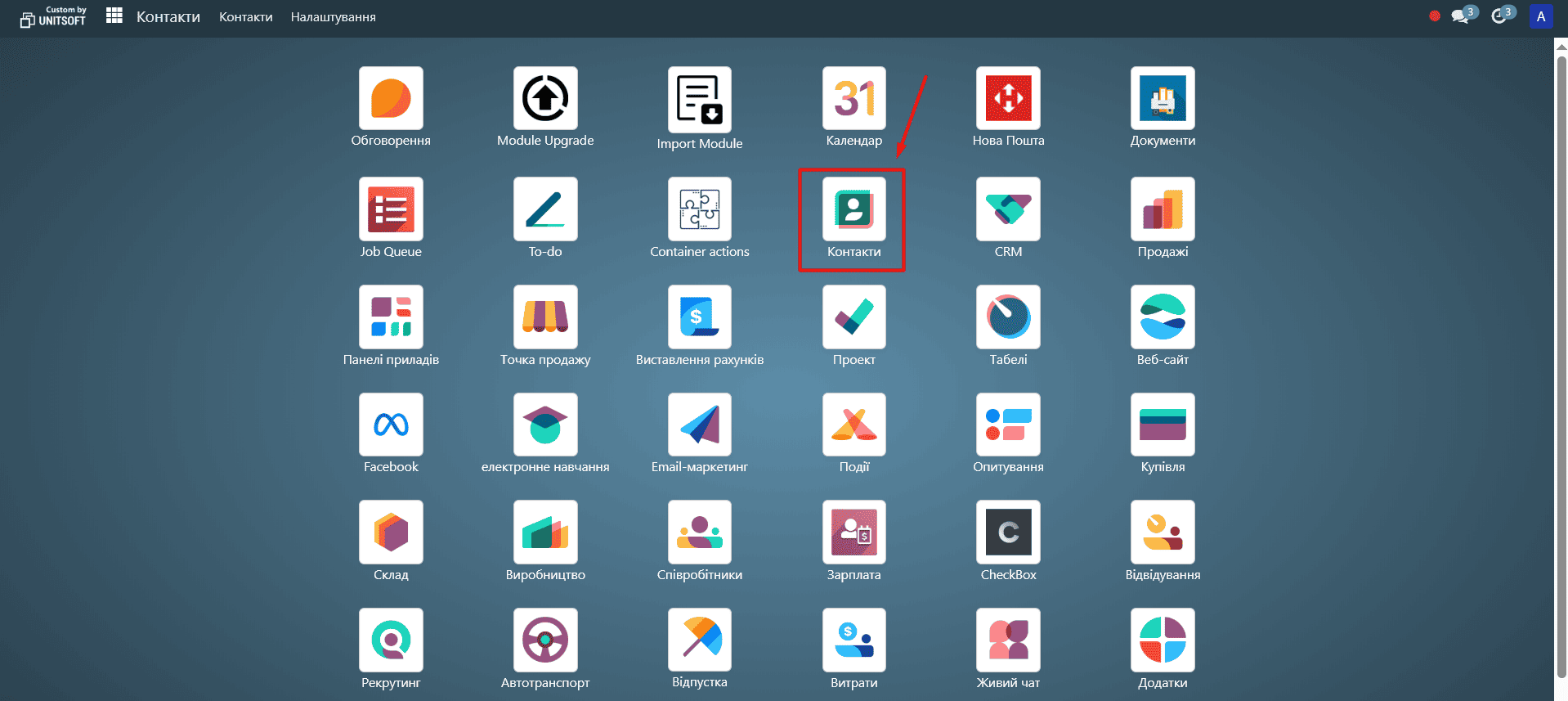 Відкрийте картку необхідного контакту. Перевірте, чи в ній внесена електронна адреса (саме на цю адресу прийде запрошення). Натисніть кнопку «Дія» - «Надати доступ до порталу»: