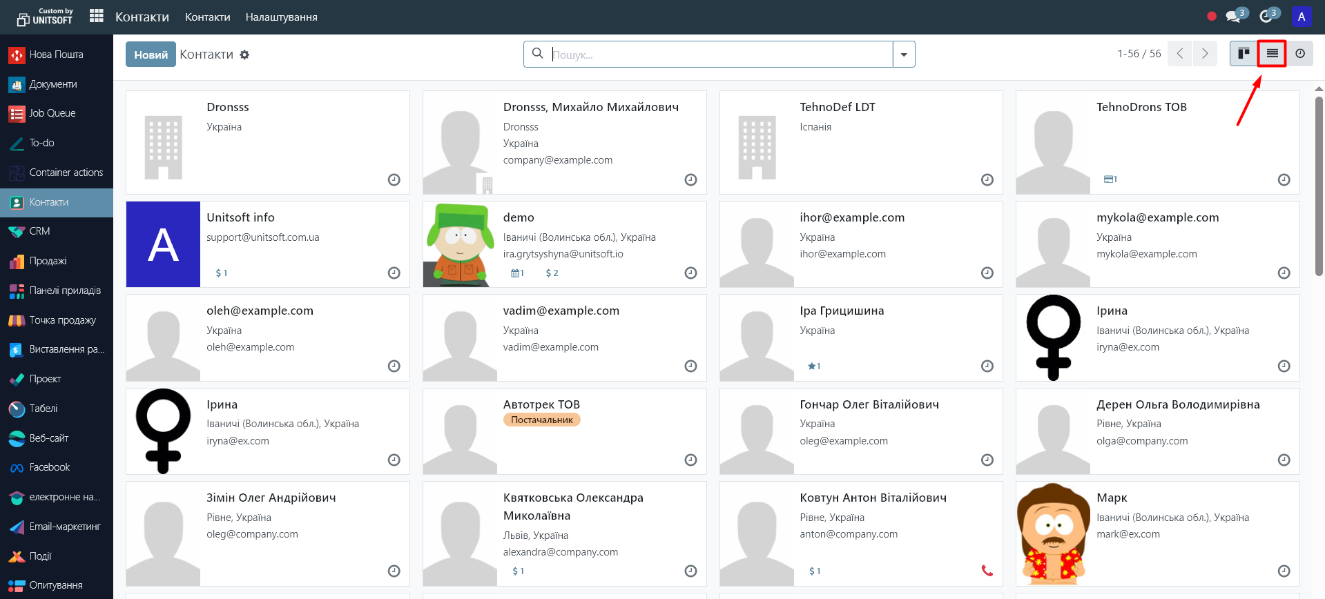 Якщо Вам потрібно одночасно багатьом клієнтам надати доступ в портал, тоді відкрийте перелік контактів у вигляді «Список»:
