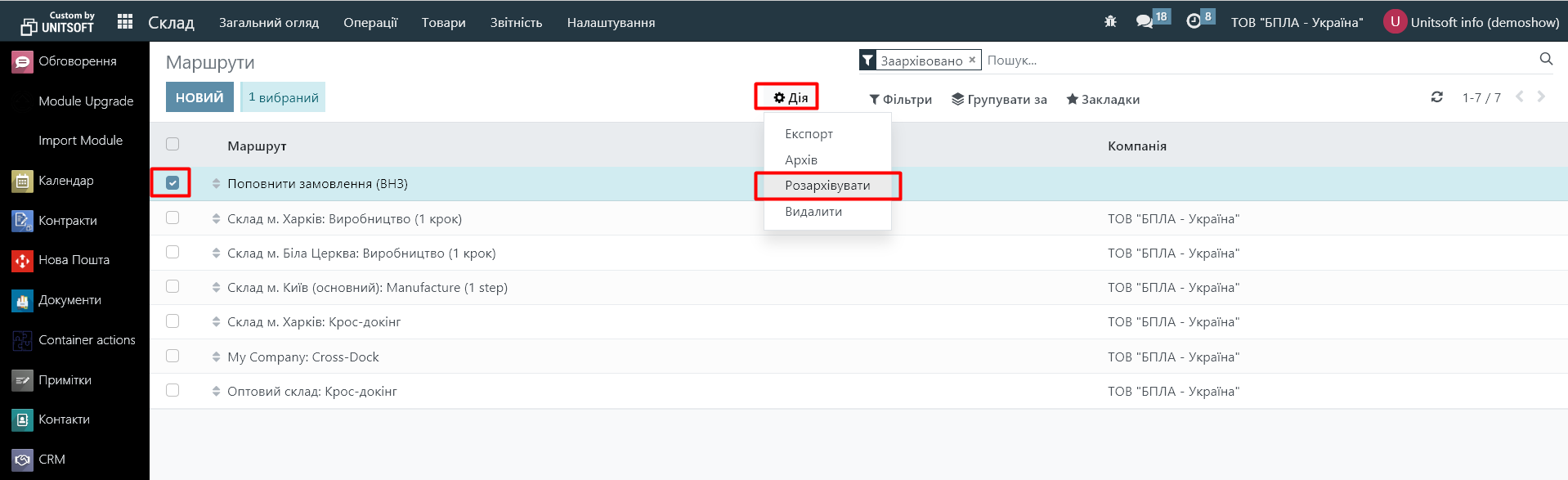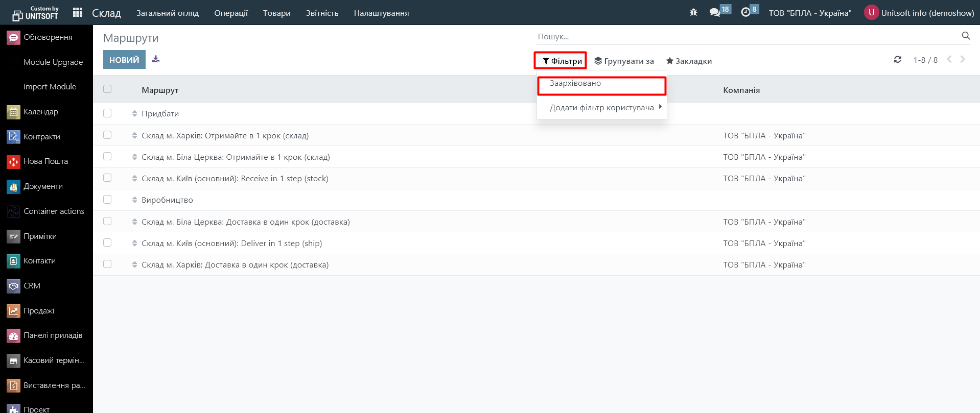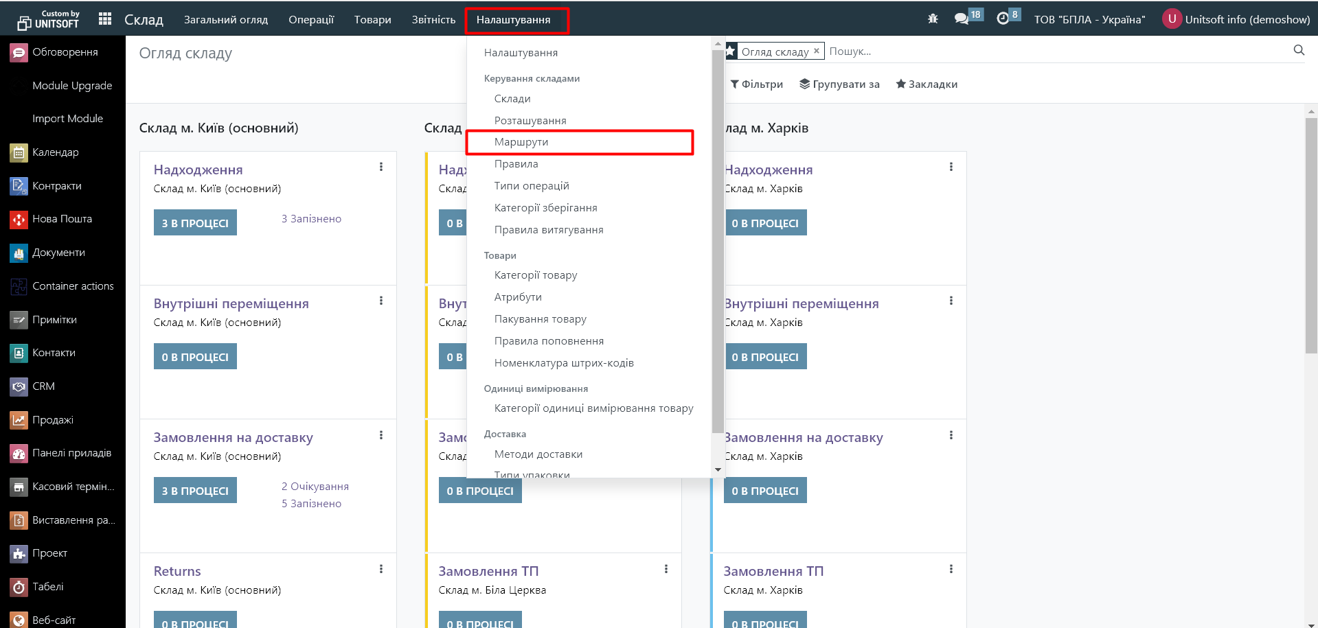 2.1. Перейдіть в модуль «Склад» - «Налаштування» - «Маршрути»: