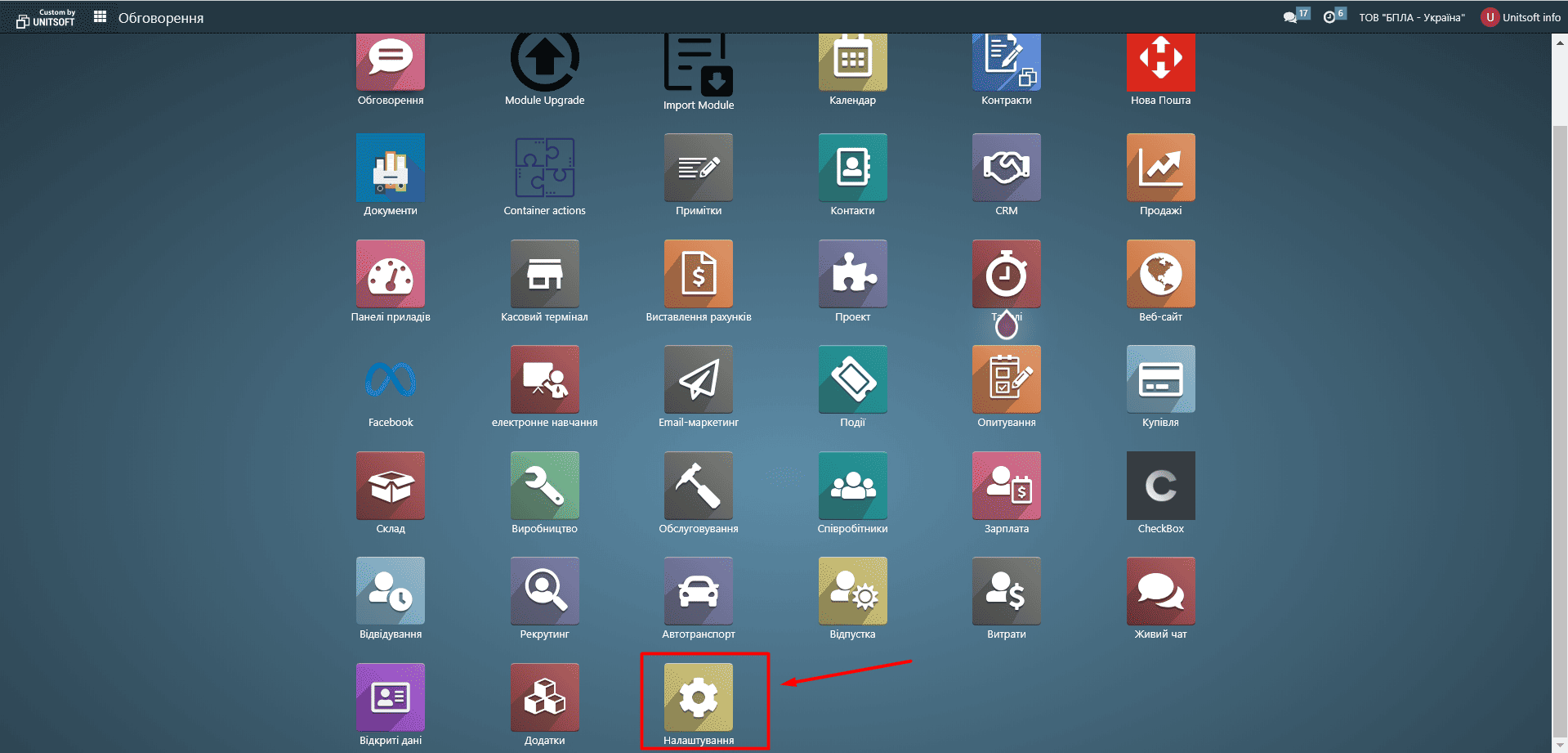 1.1. Перейдіть в модуль «Налаштування»: