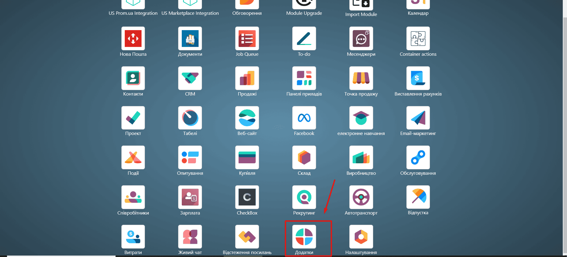 Перейдіть в модуль «Додатки»: