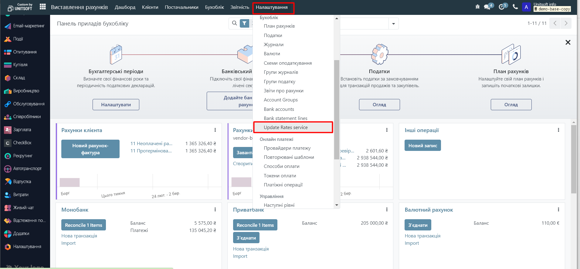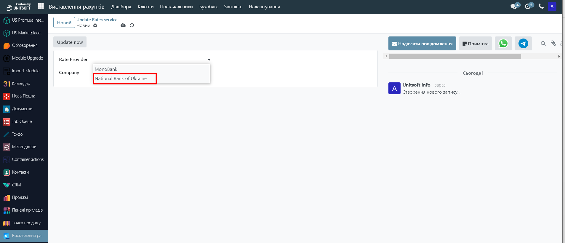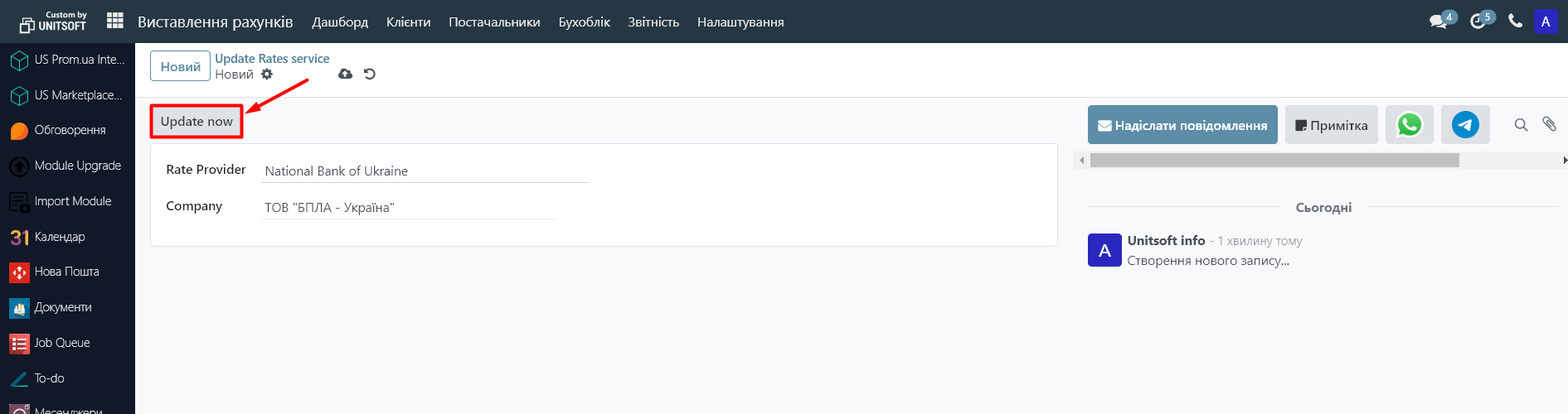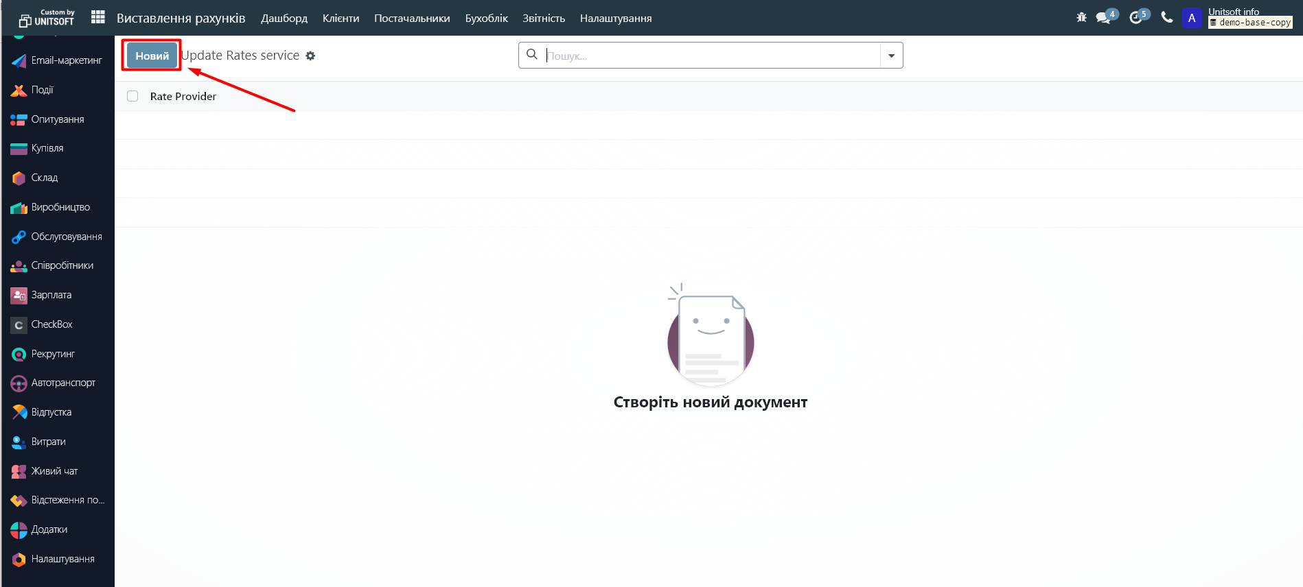 Перейдіть в модуль «Виставлення рахунків»: