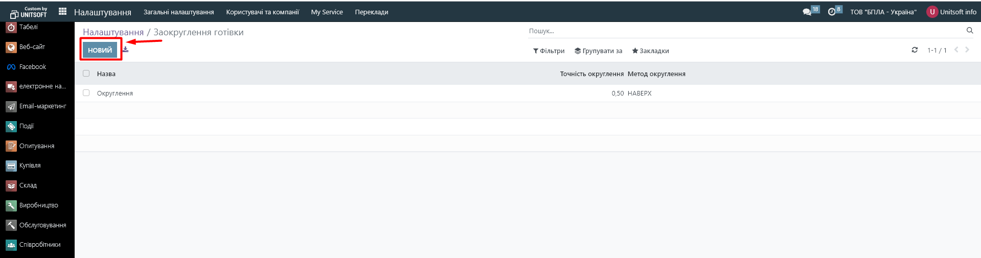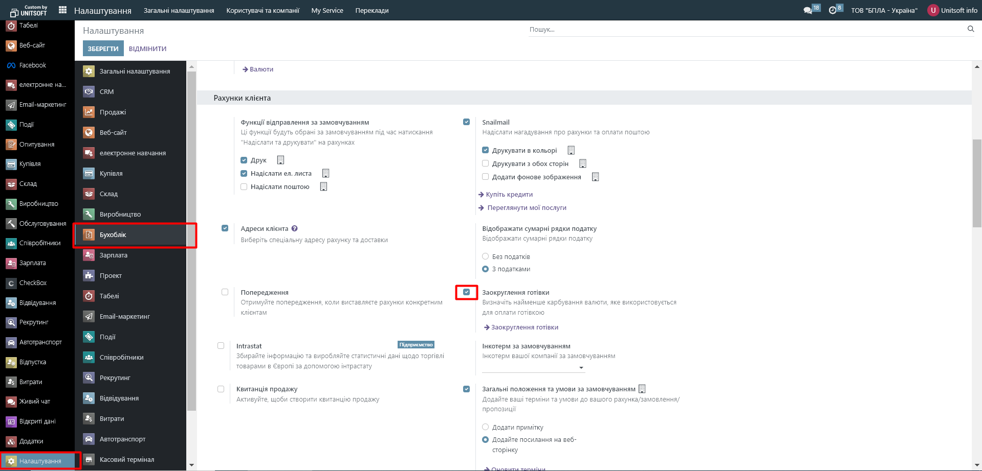 Для цього необхідно ввімкнути заокруглення готівки в налаштуваннях ( модуль «Налаштування» - розділ «Бухоблік» - відмітка «Заокруглення готівки»):