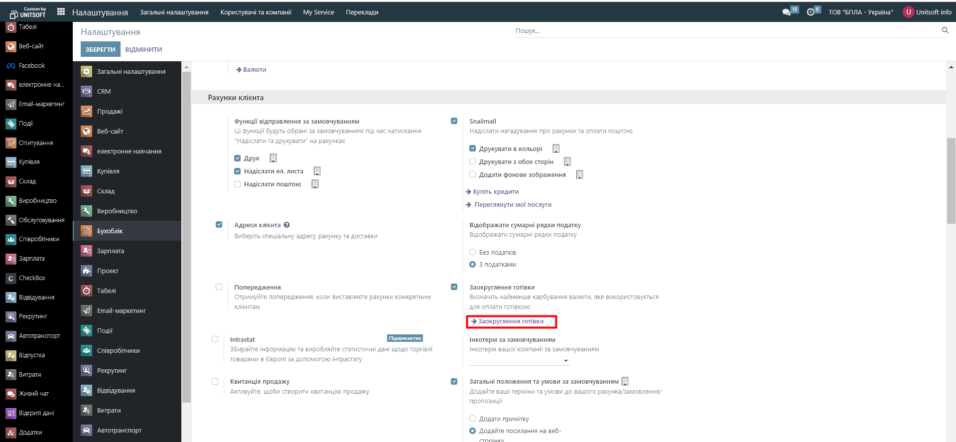 Зберігаємо зміни і переходимо до налаштування методу округлення. Для цього натискаємо на посилання «Заокруглення готівки»: