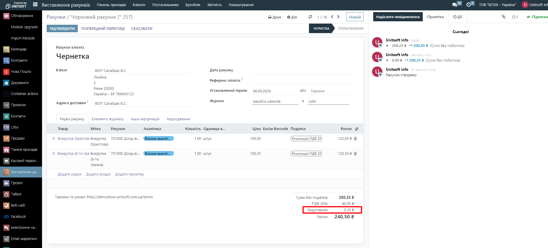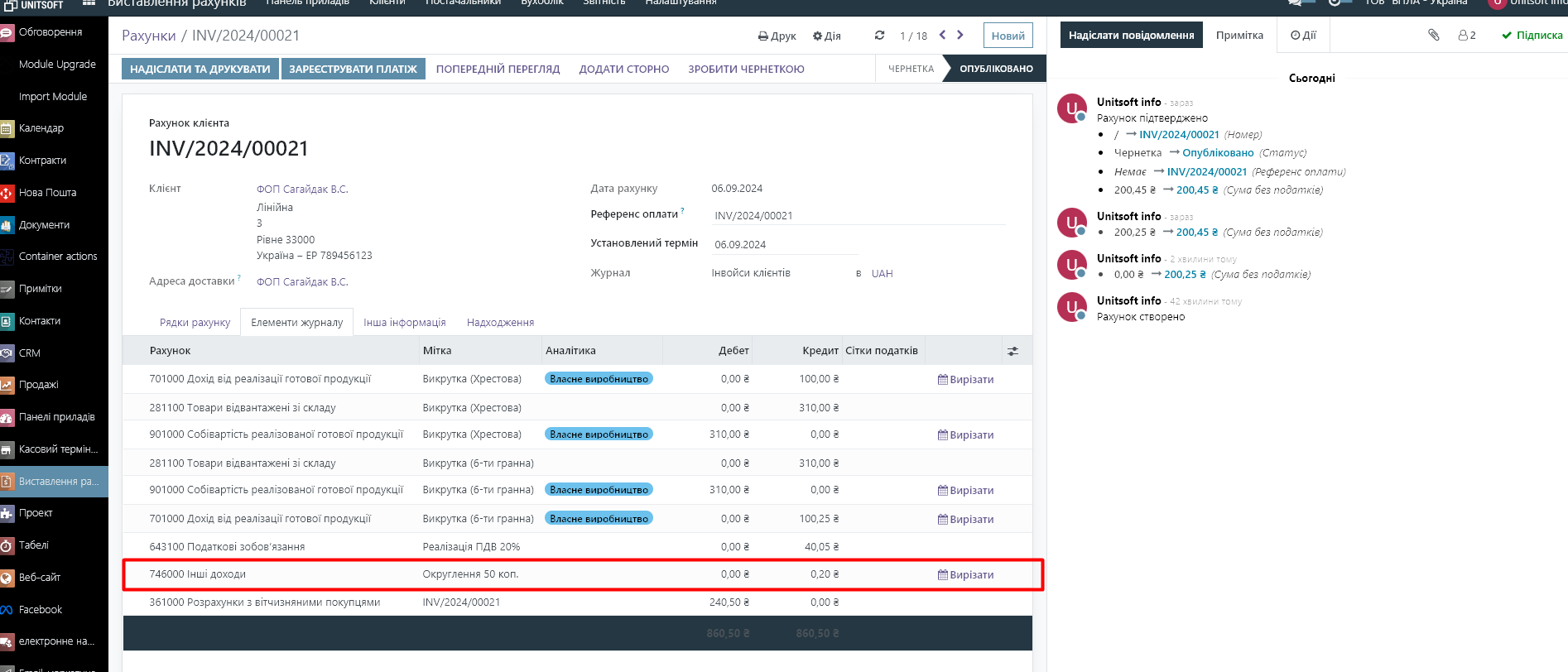 1. В рахунку (інвойсі) з'явився рядок, який показує суму округлення: