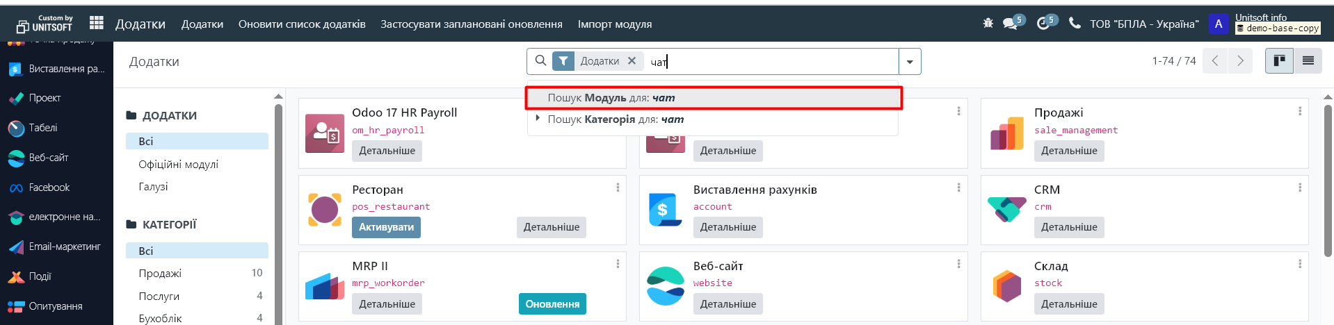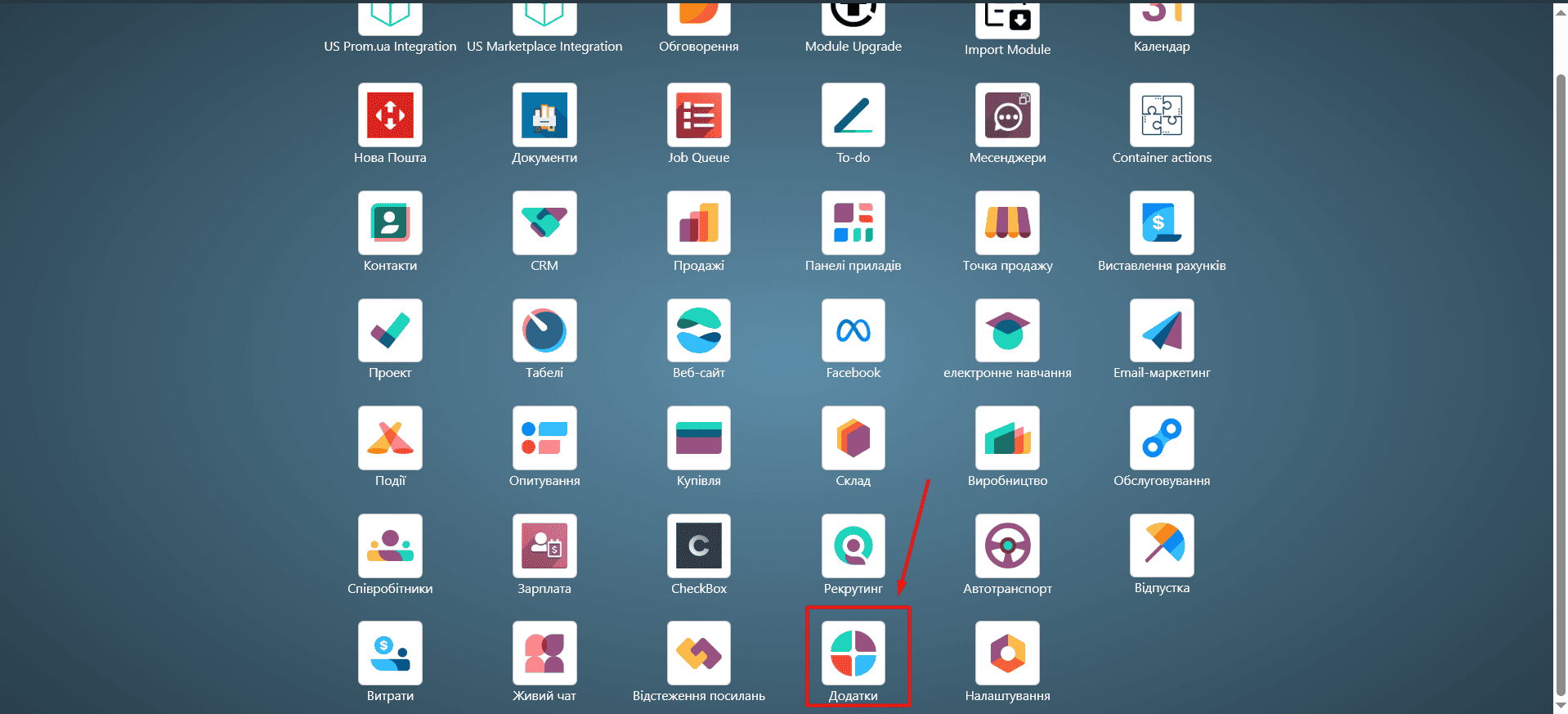 Перейдіть в модуль «Додатки»: