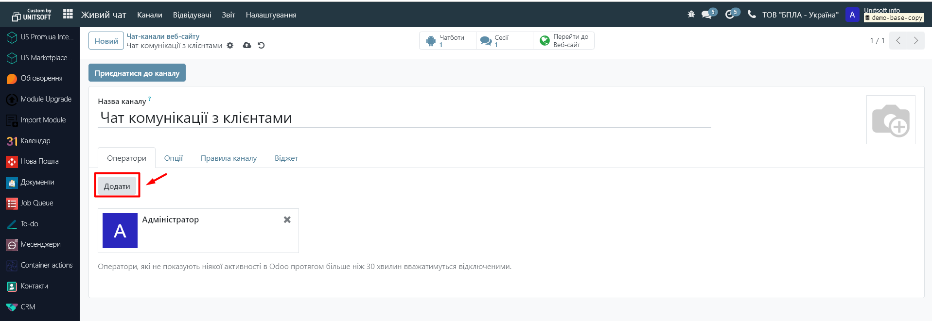 • Додати операторів чату:
