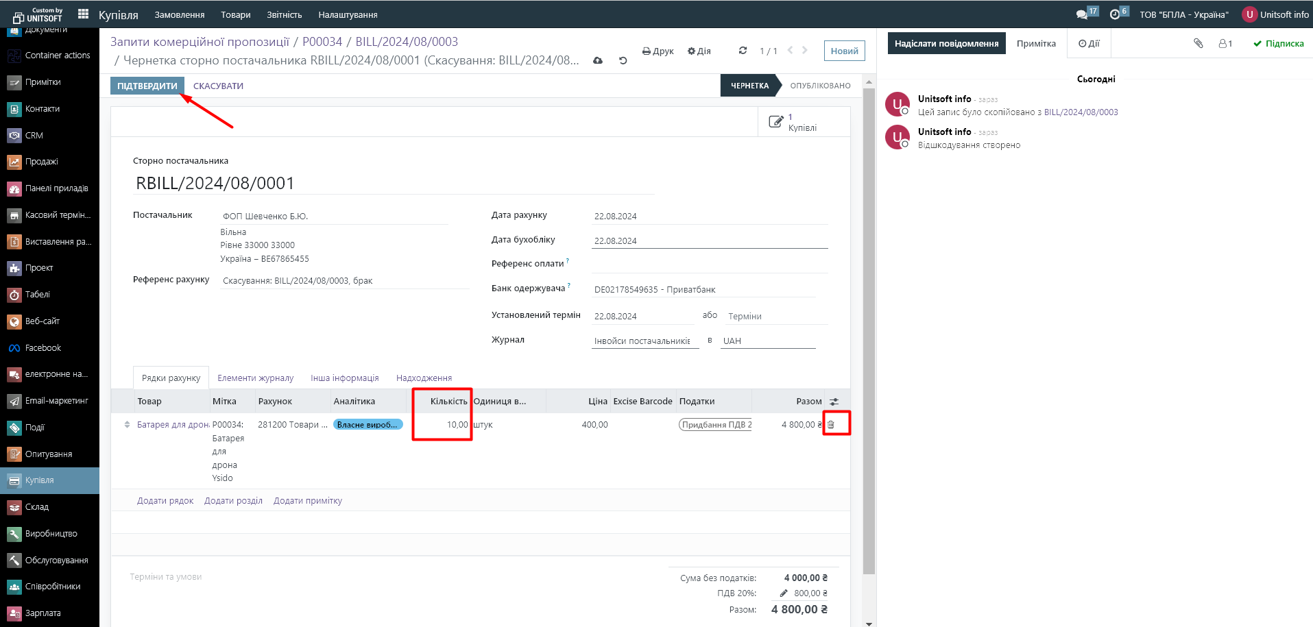 Корегуємо перелік та кількість товару, які було повернуто. Підтверджуємо документ.