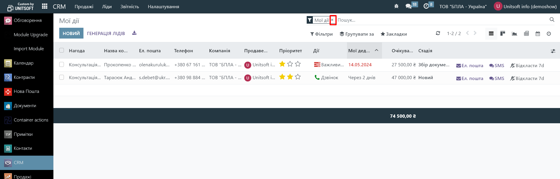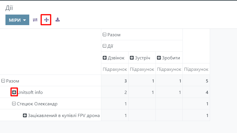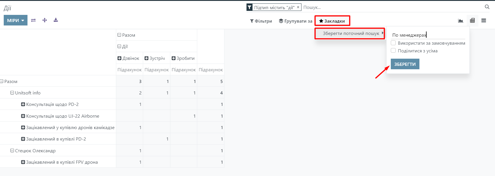 Керівник для аналізу запланованих дій всіх менеджерів може забрати фільтр «Мої дії»: