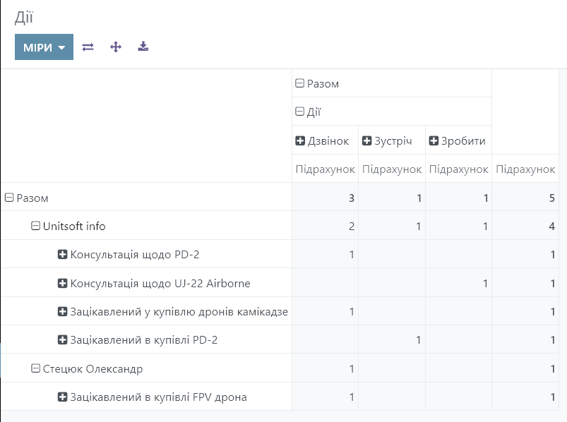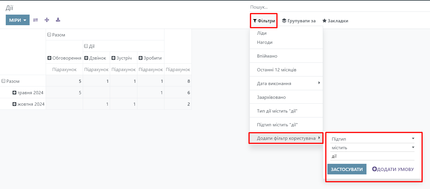 Якщо Ви хочете в звіті бачити лише дії застосуйте фільтр: