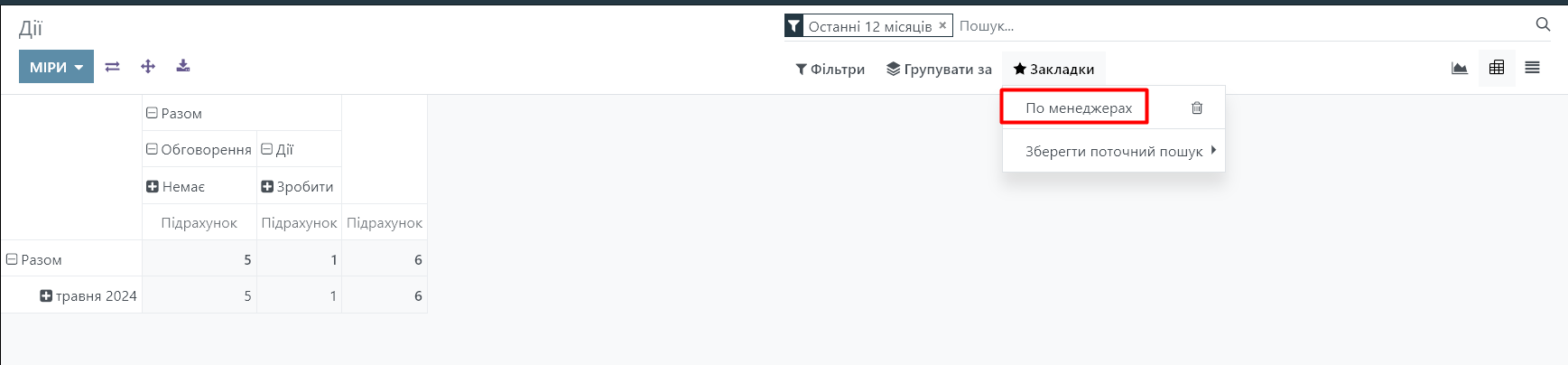 Наприклад, Ви не хочете бачити групування по місяцях, а лише зведену інформацію по виконаних діях менеджерами за останній квартал.