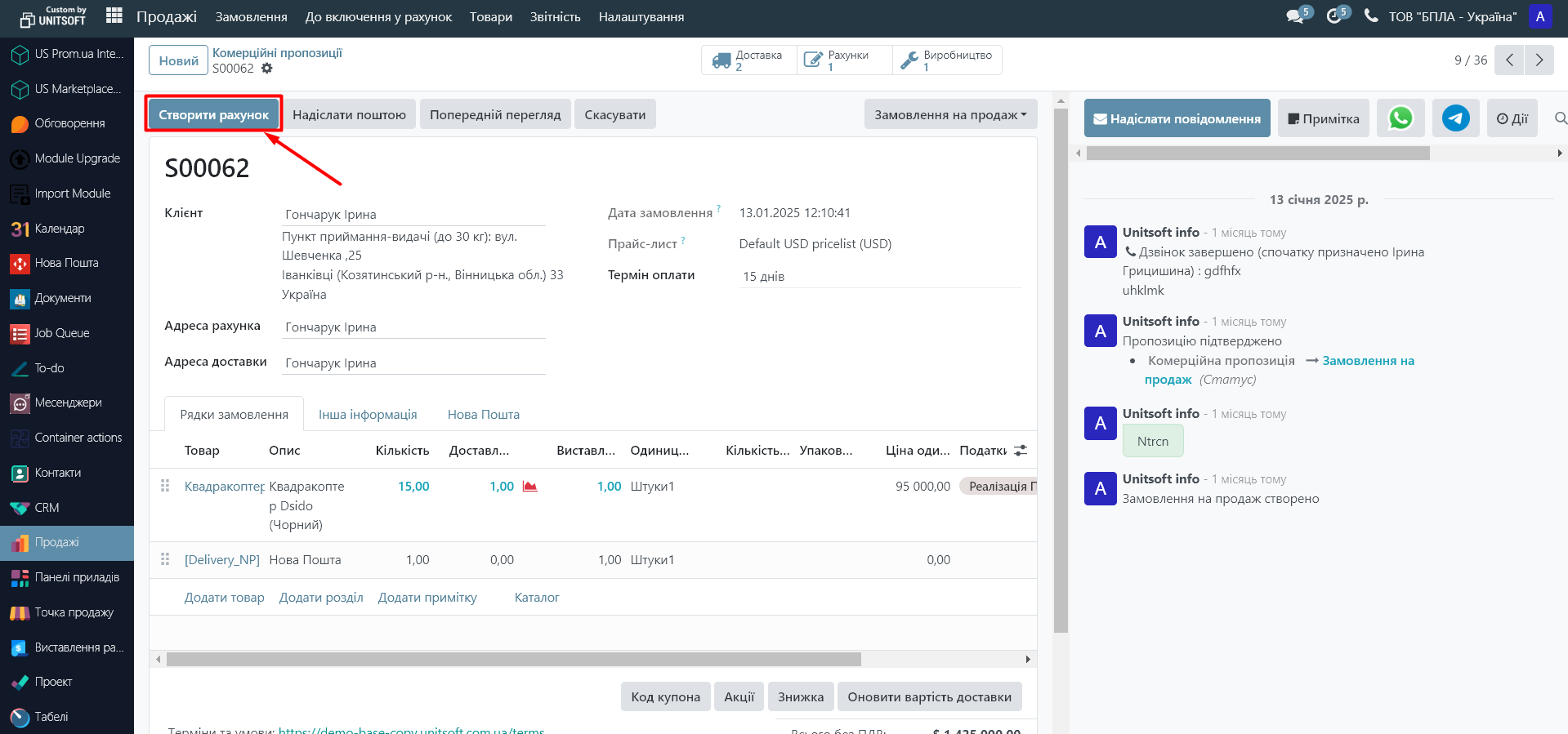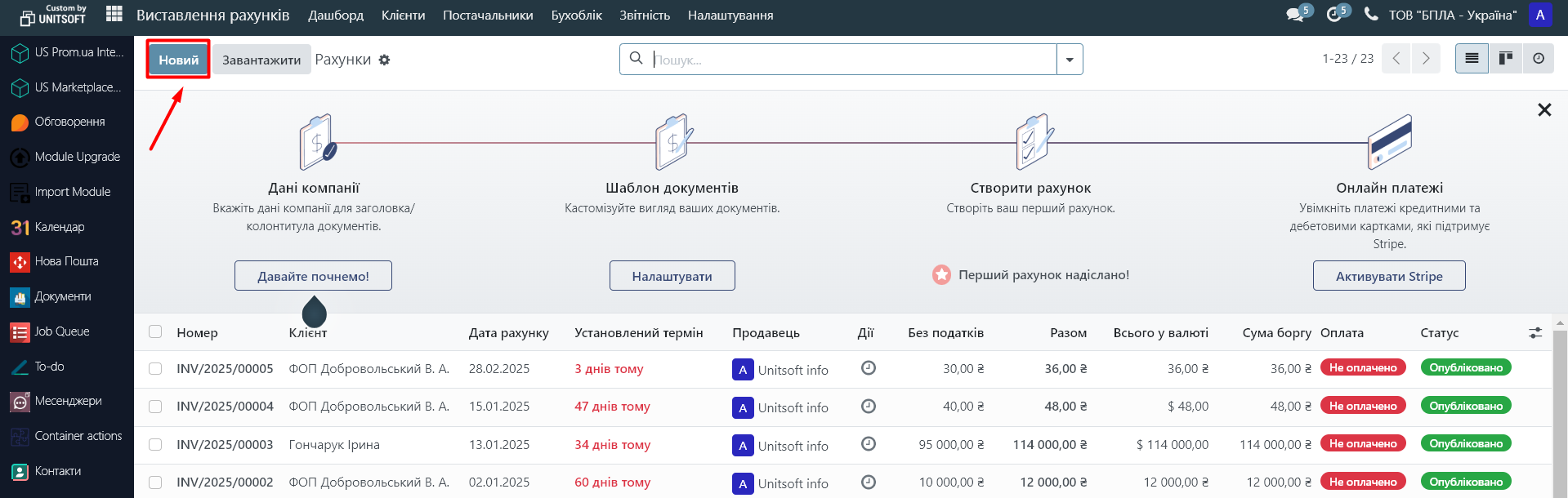- Створіть інвойс. Зробити це можна двома способами: