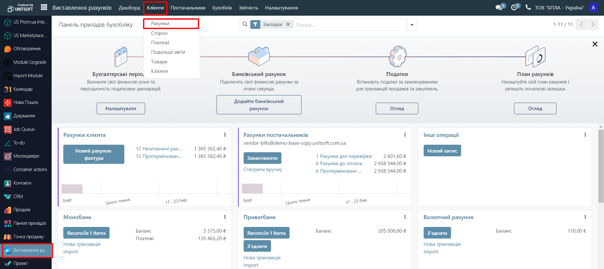 - окремо, через модуль «Виставлення рахунків»: