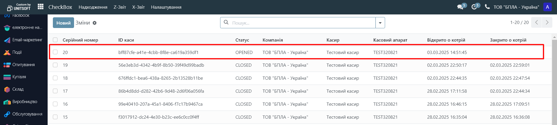 7. Після закриття касової зміни, в системі автоматично згенерується Z-звіт: