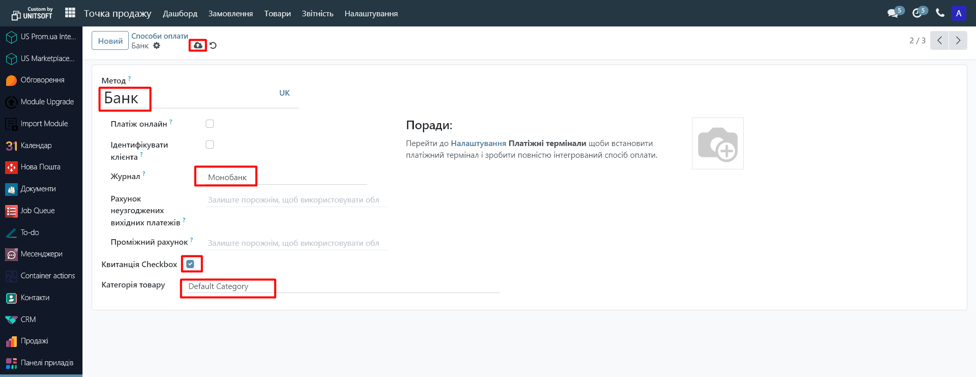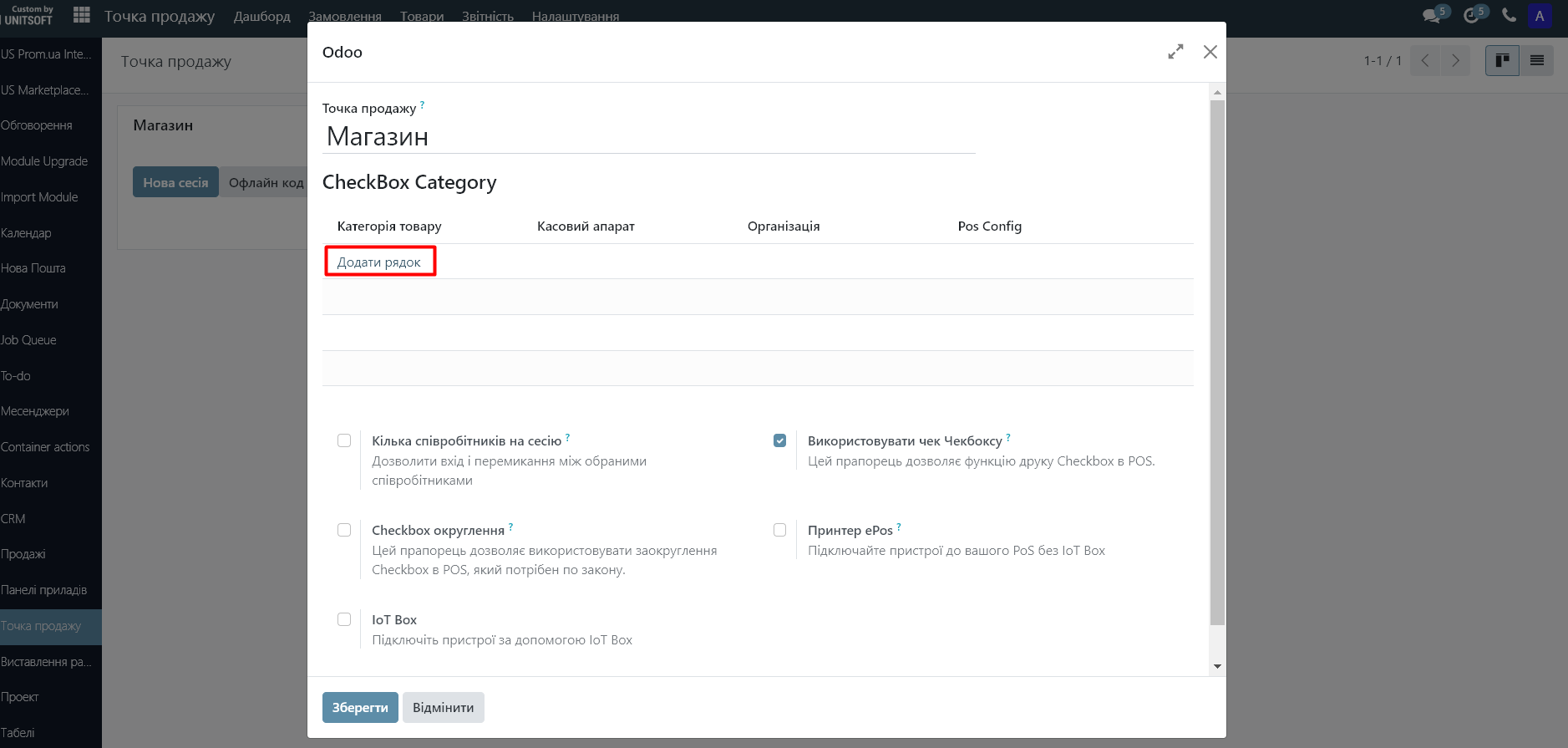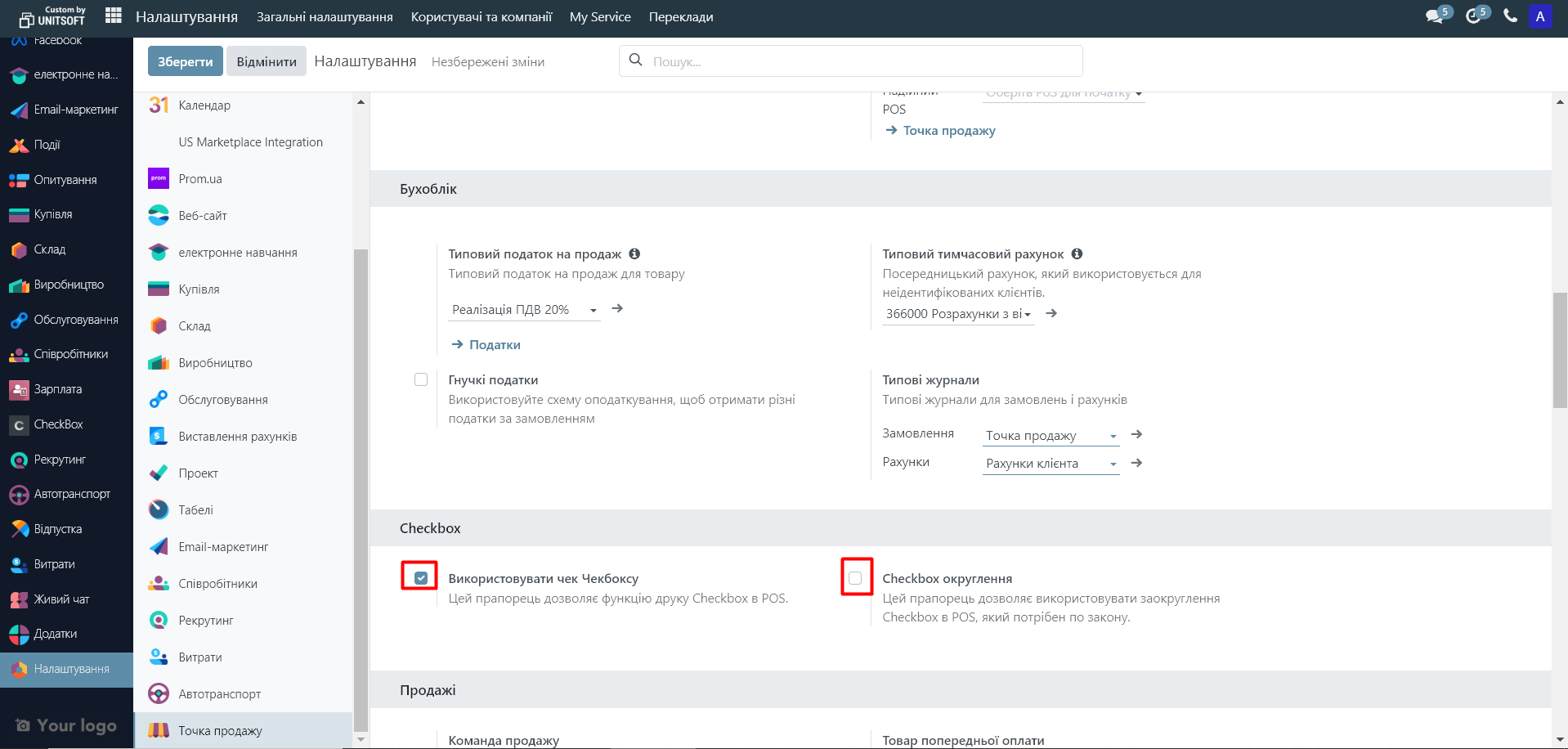 Тепер потрібно зробити окремі налаштування для точки продажу, щоб використовувати в ній функціонал Чекбоксу.