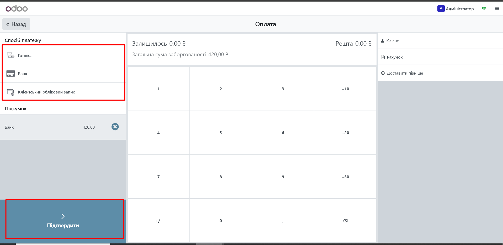 Вкажіть метод оплати та натисніть «Підтвердити»: