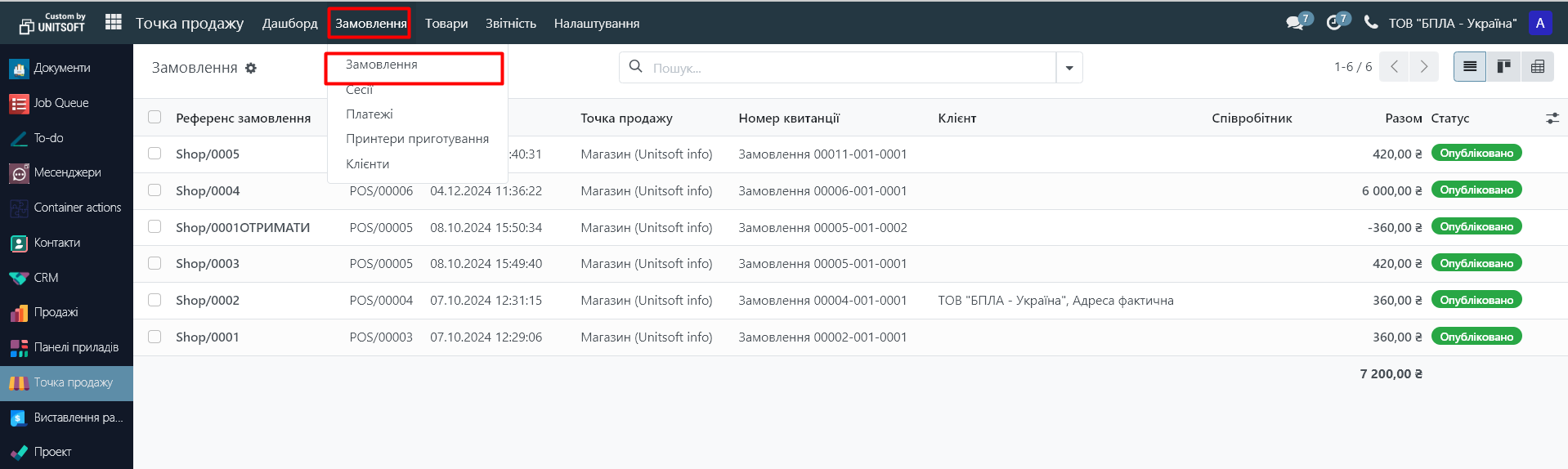 Для перевірки успішності фіскалізації перейдіть у «Замовлення» - «Замовлення».