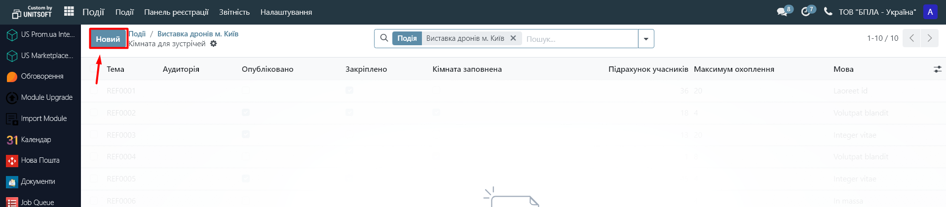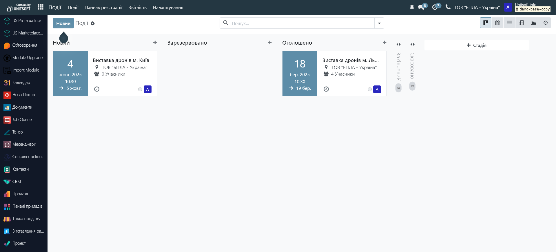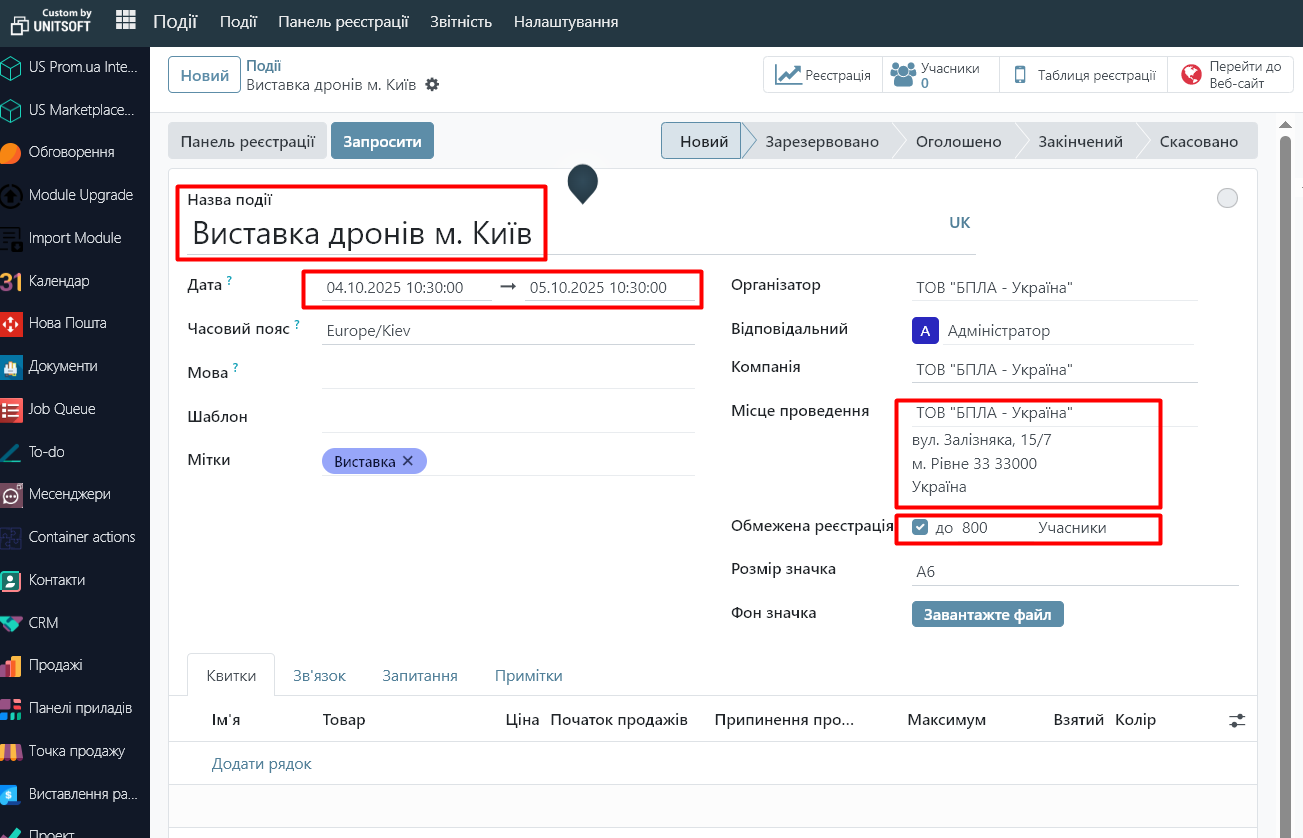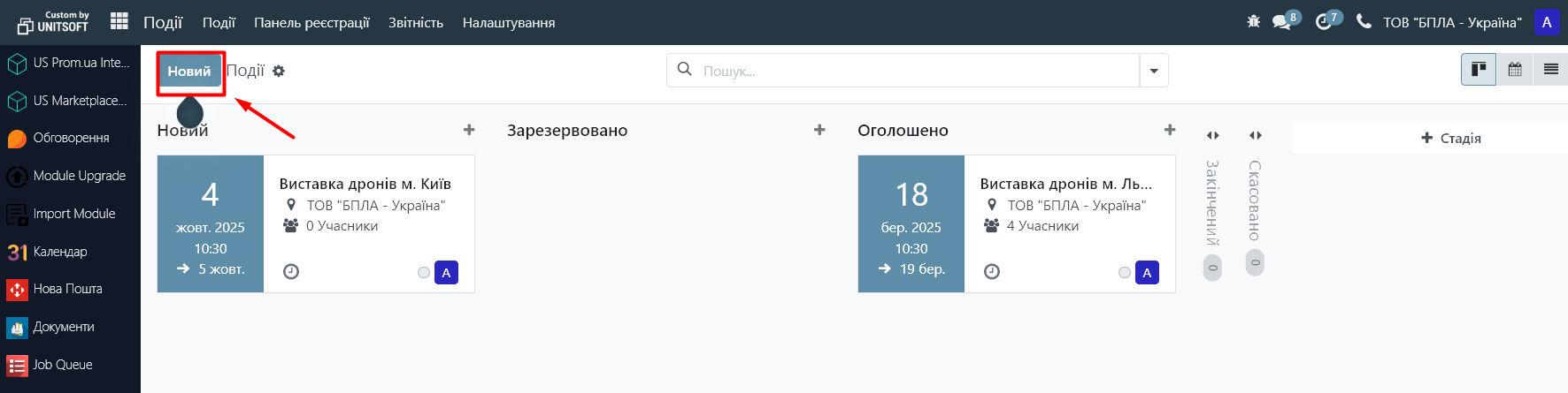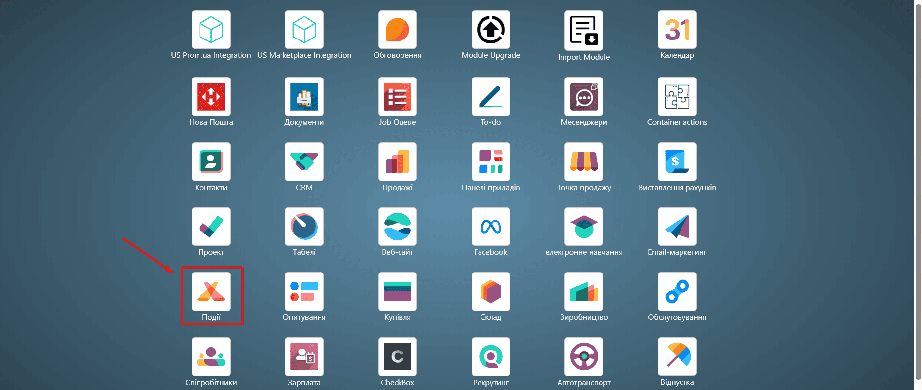 Модуль «Події» в Odoo дозволяє створювати, планувати та управляти подіями, такими як семінари, тренінги, вебінари або конференції. Нижче наведено покрокову інструкцію, як користуватися цим модулем.
